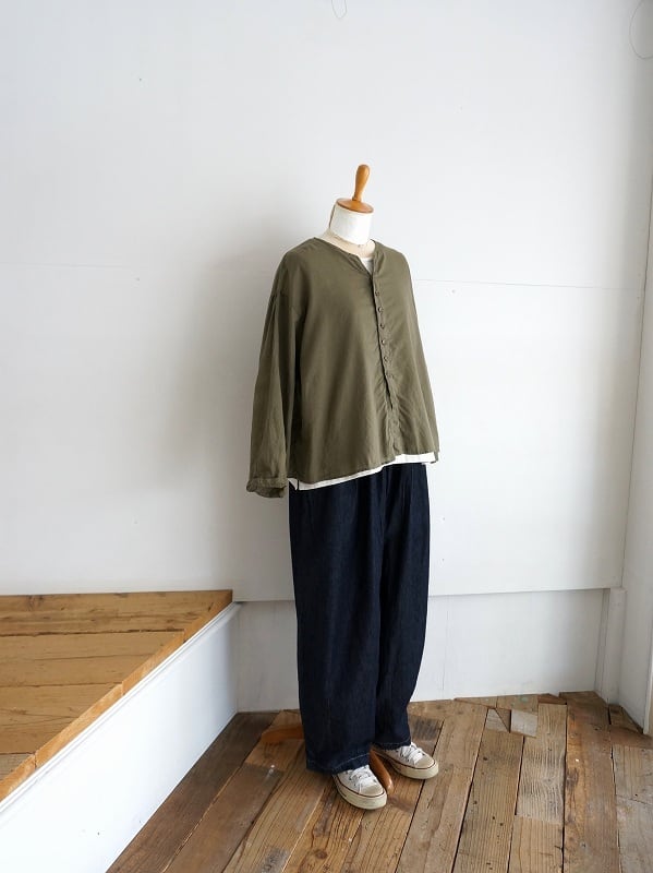 薄手でやわらかなガーゼボイルの生地を使っています。さらっとした軽さが心地よいカーデシャツ。袖は長袖、ちょっと羽織るのにおすすめのデザインです。