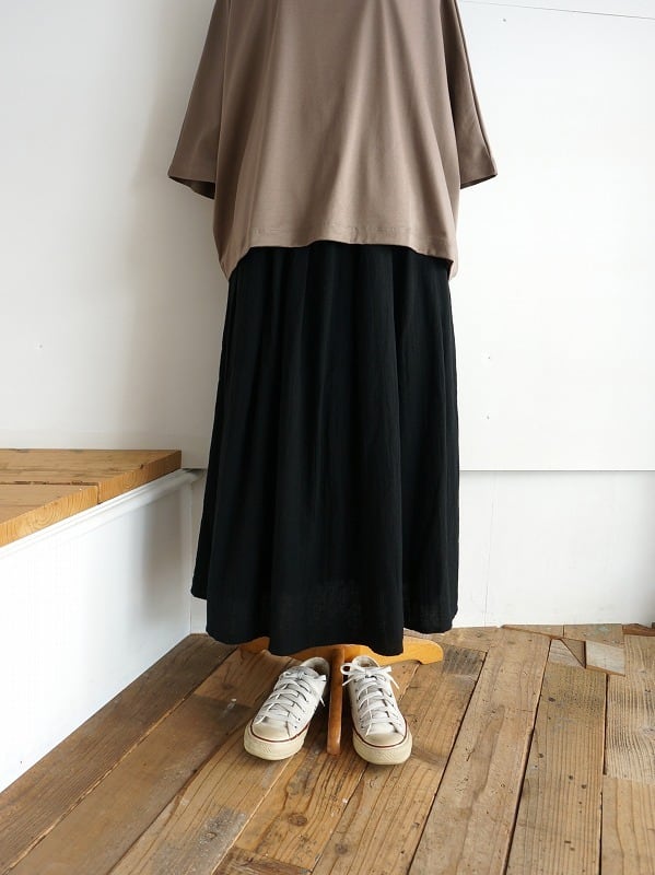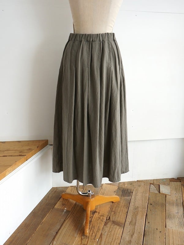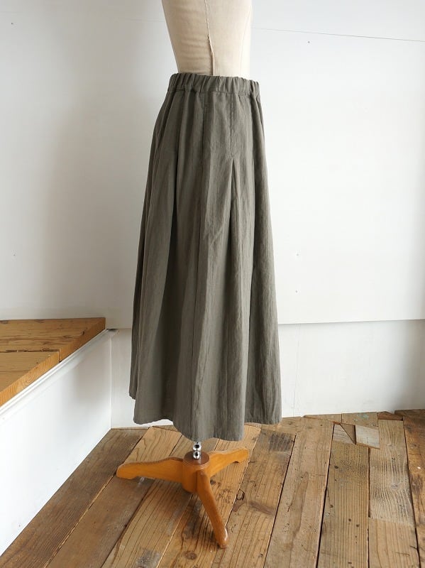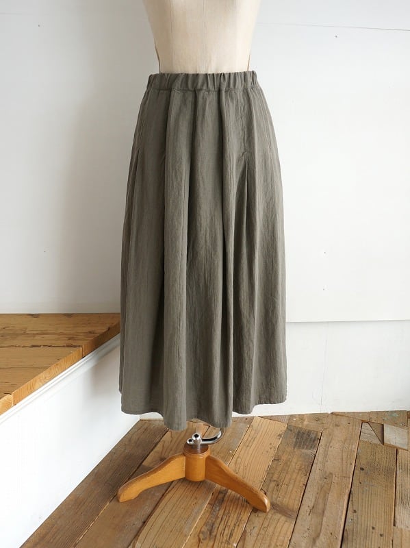 しっとりやわらかな風合いが魅力のコモドクロスを使用したスカートです。ゴムのウエストにタックとギャザーが施されたフレアのシルエット。ふんわりした軽さと、やわらかな落ち感がきれいに表現された特別感のある一枚です。形も色合いも、幅広く着回しが利くので長く愛用していただけると思います。