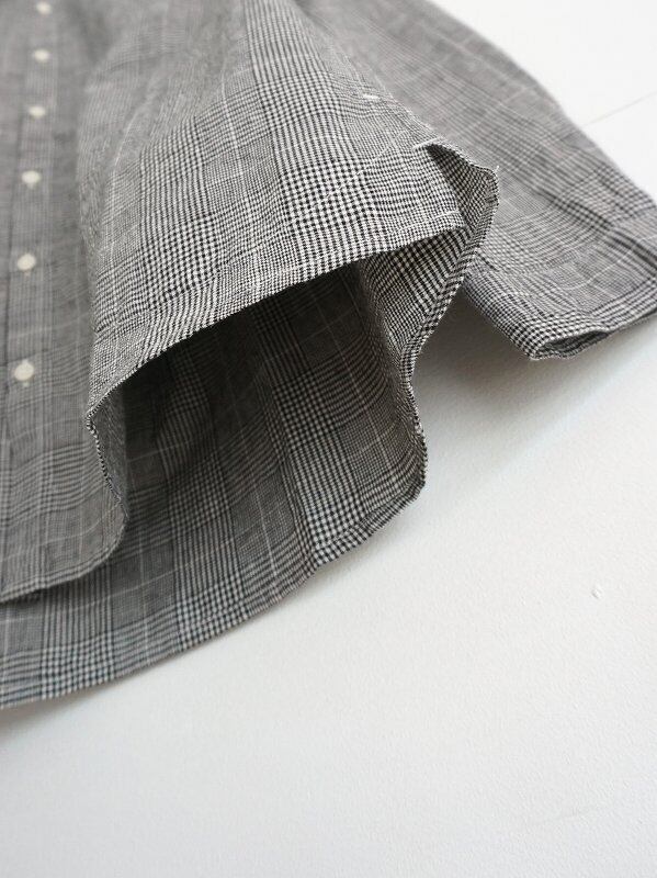 適度に張り感があり、麻混じりでさらっとした肌触りになっています。モノトーンで構成されたチェックの生地です。