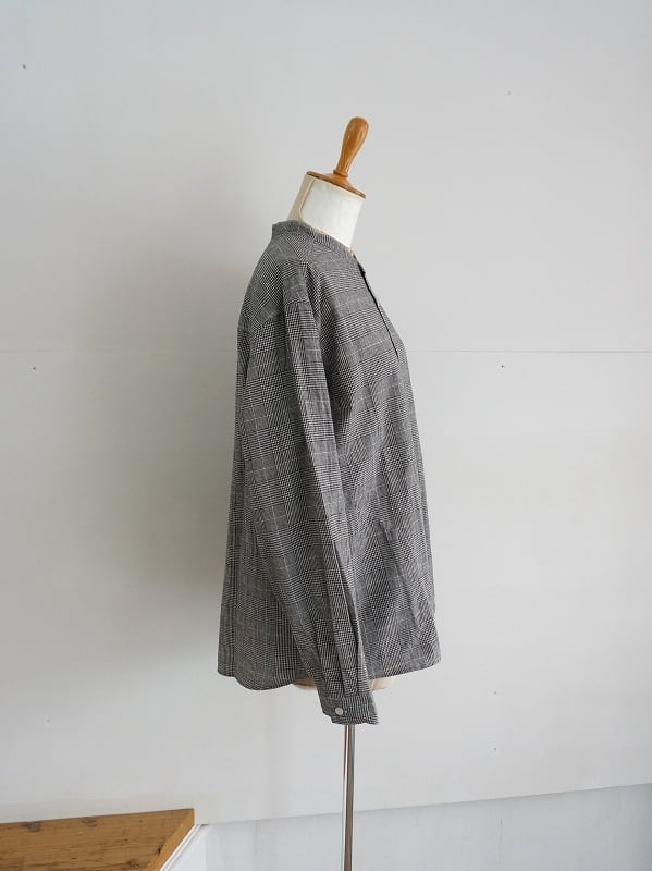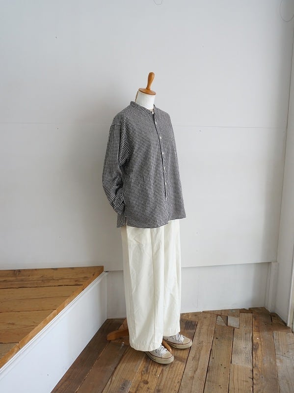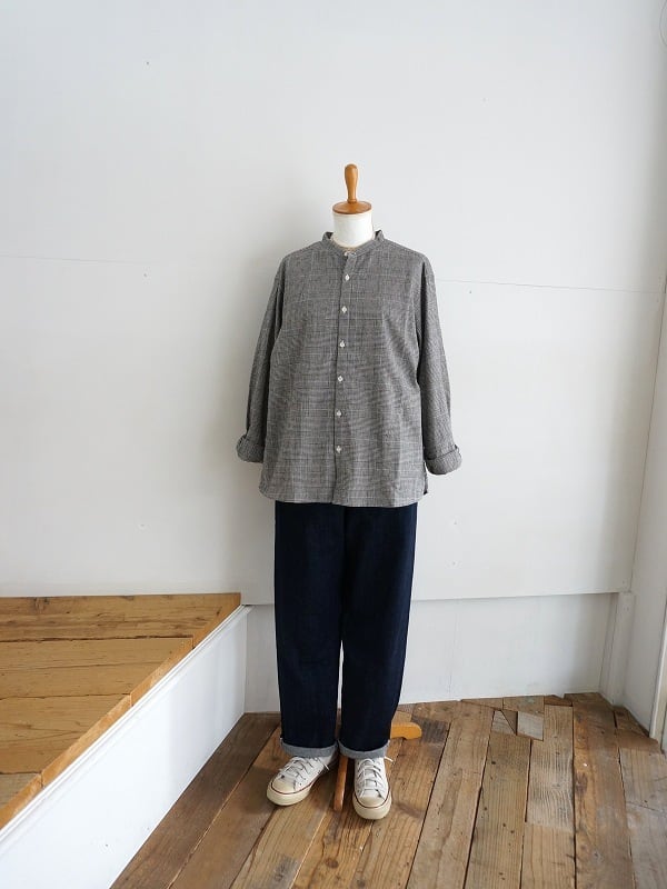 適度な張り感と、さらっとした肌離れの良さが魅力の綿麻素材を使用しています。落ち着いたトーンのモノクロチェックシャツです。