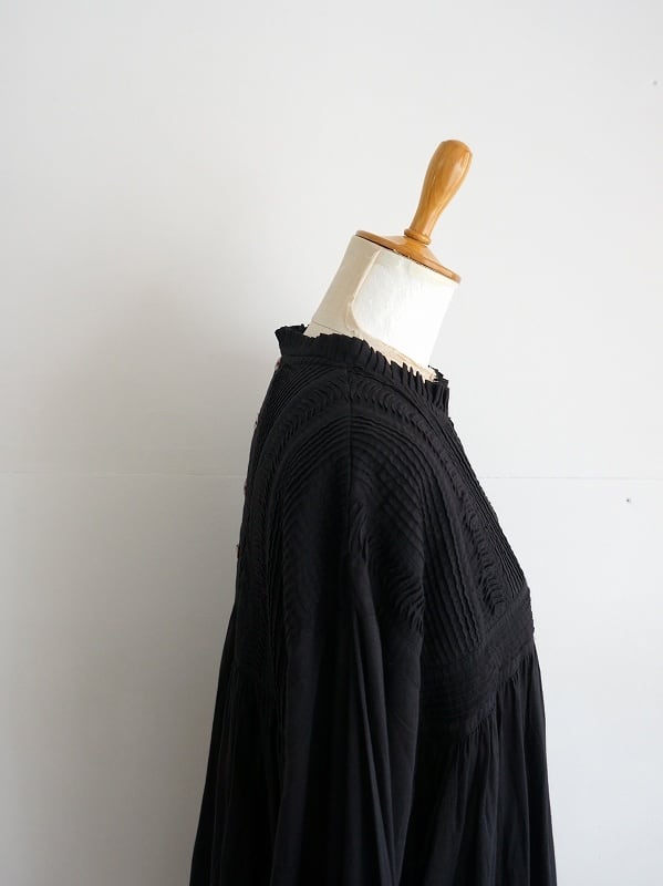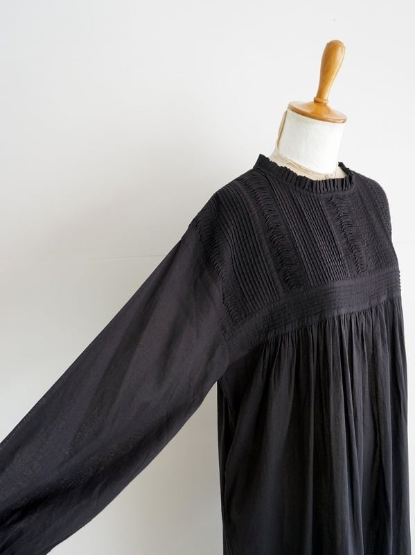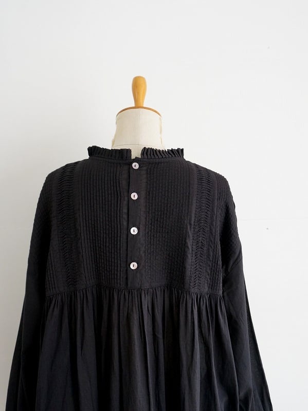 細かく施されたピンタックがポイントで、シンプルに見えて上品さがうかがえるデザイン。身頃には程よくゆとりがあり、軽い素材感でふんわり女性らしいシルエットが楽しめます。