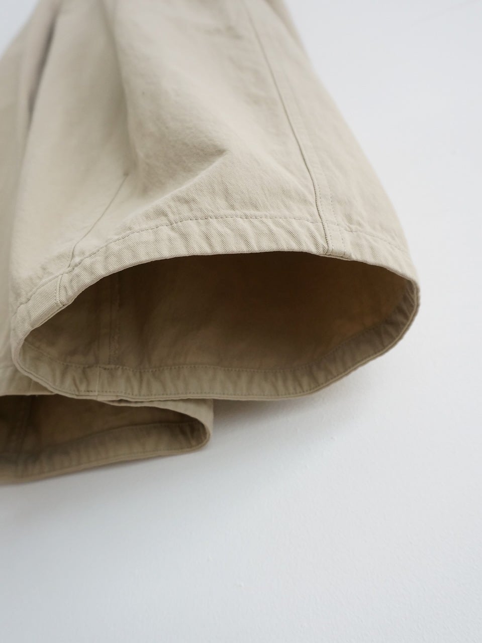 太番手の強撚コットンで織り上げられた、ちょっと厚みのある生地を使ったパンツです。