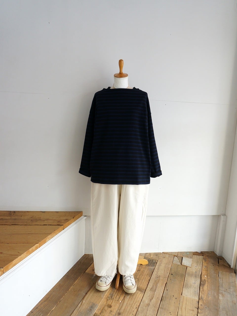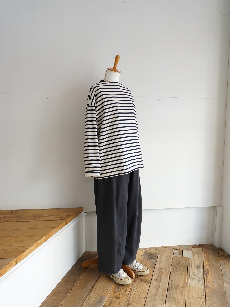身幅と袖幅にゆとりをもたせたデザインで、リラックス感があります。身幅と丈のバランスがいいので、合わせるボトムを選ばず、幅広くコーディネートに活用していただけます。