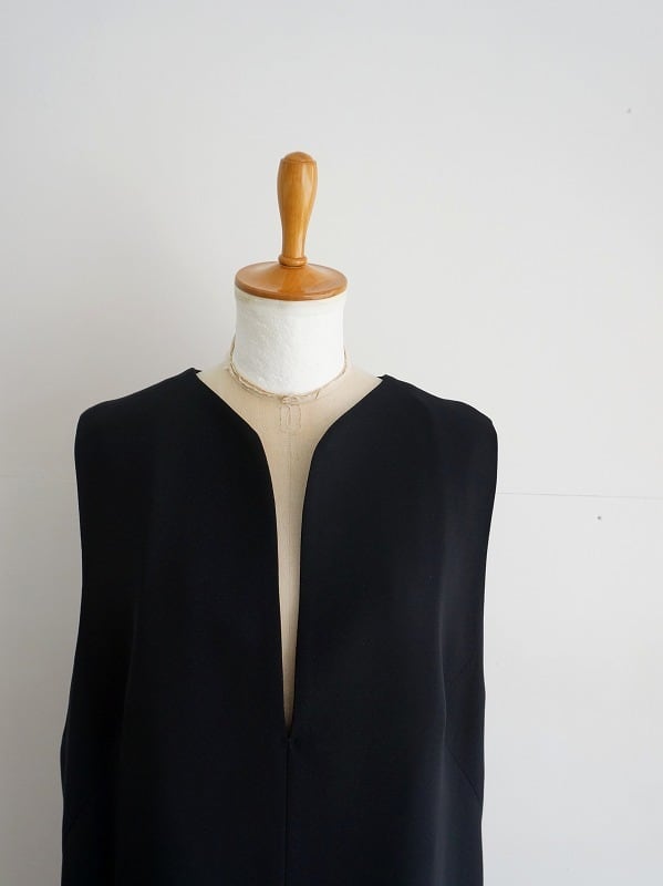 すっきりストンとしたシルエットのミニマルなつくり、背中にもポイントがあります。裾には両サイドにスリットが入り、足さばきもしやすくなっています。