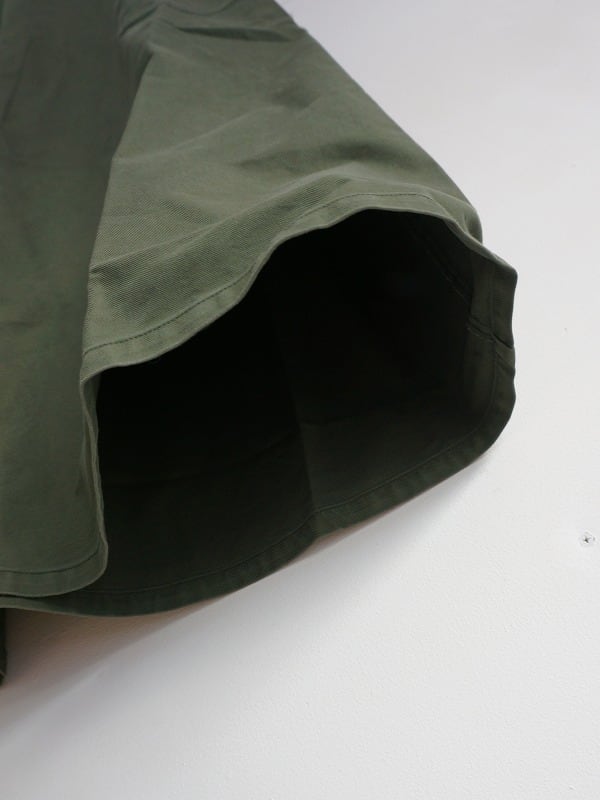 フランス軍などで使用されていた綾織りの生地です。程よい厚みでコシがありながらもしなやかな生地感。着ていくうちに次第になじんでいく風合いの変化も魅力です。