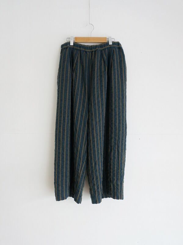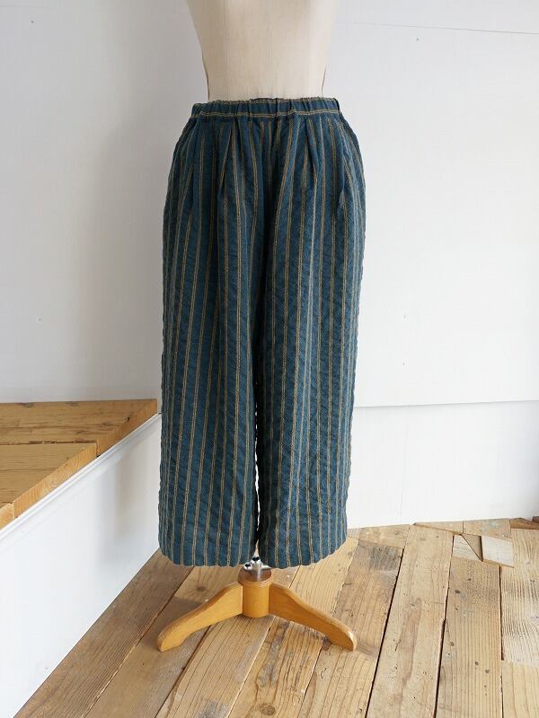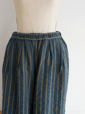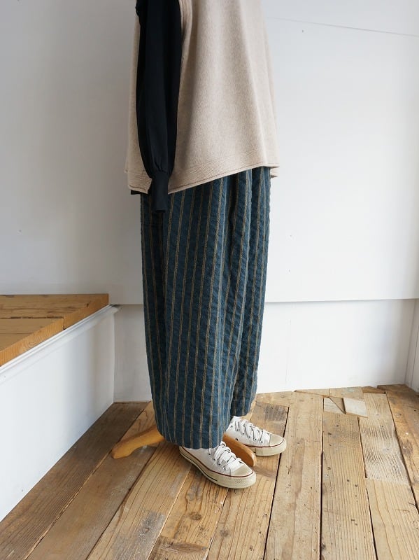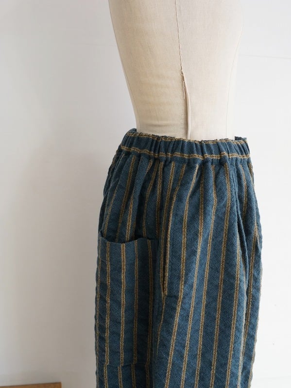 生地の風合いとストライプ柄がコーディネートのアクセントに。あたたかみのある雰囲気で合わせていただけます。総裏付きでするっと穿けます。