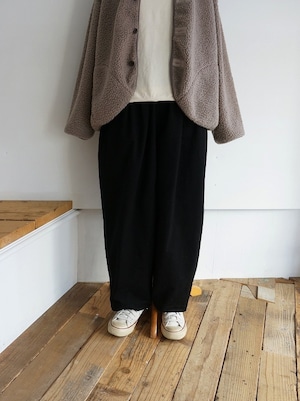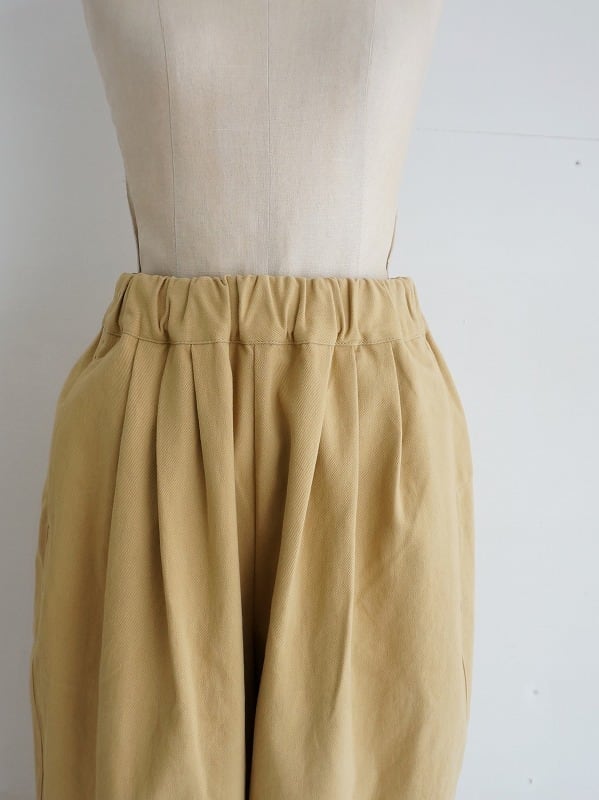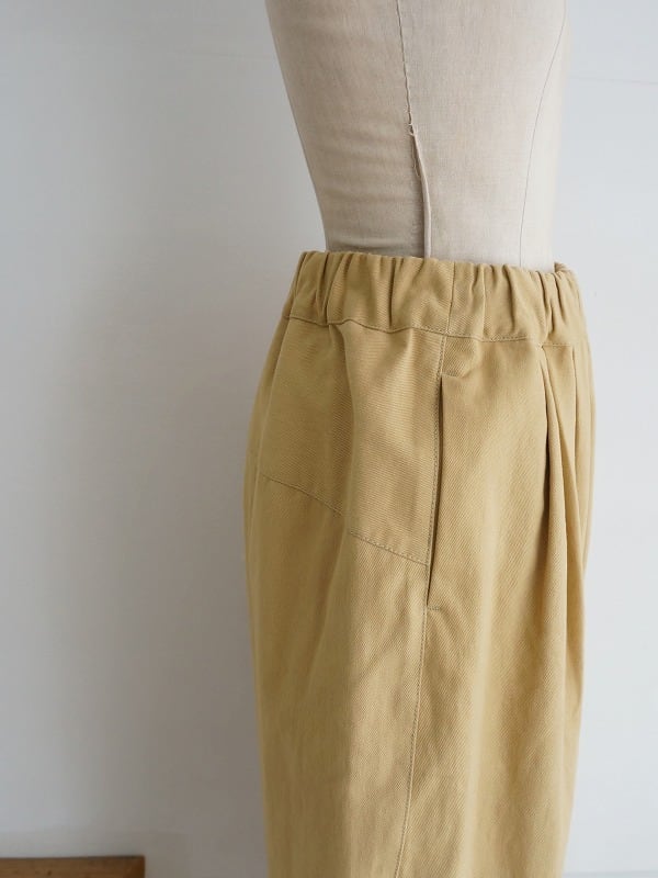 2タック入り、テーパードシルエットのイージーパンツです。ヒップの切り替えで立体感を持たせたデザイン。程よくゆとりのある腰周りから、裾へすっきりテーパードしています。