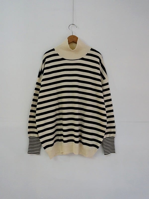 ■コットンウールボーダー タートルネックワイドプルオーバー