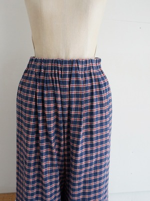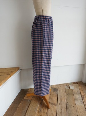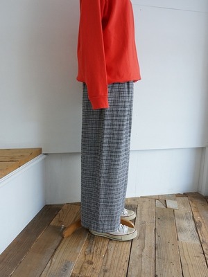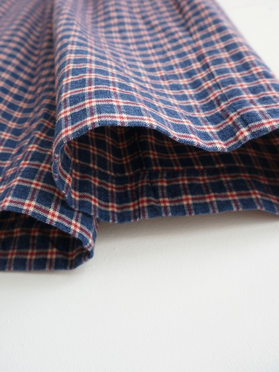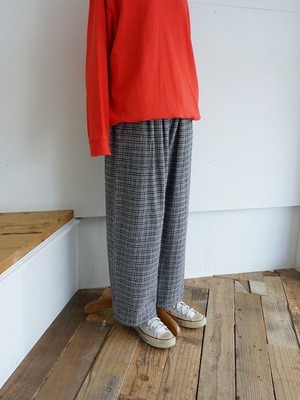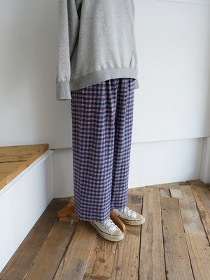 うっすら起毛したあたたかみのあるネルの生地のパンツです。形はストンとしたストレートのシルエット。ちょっと懐かしい感じのするチェックがポイントです。