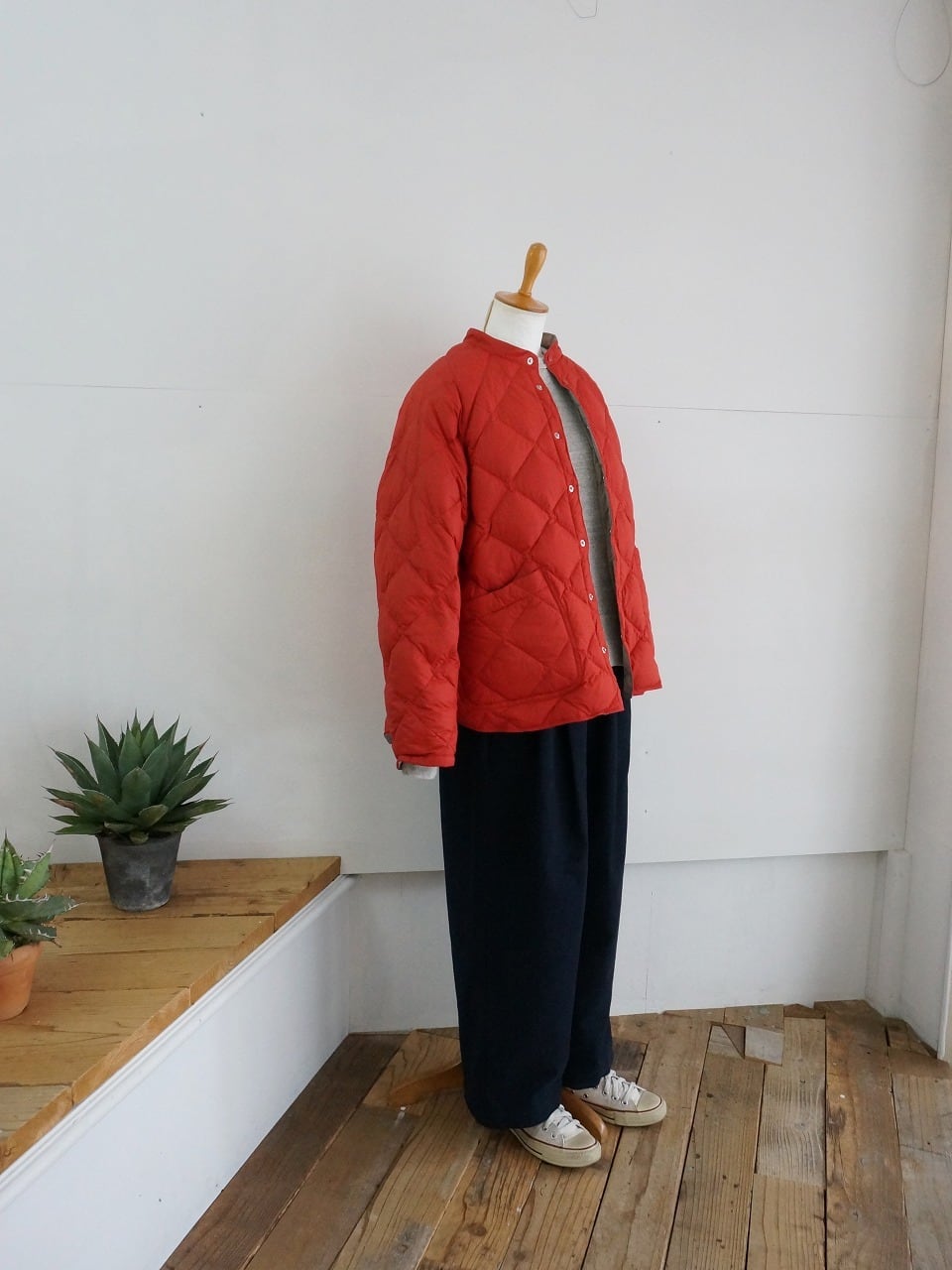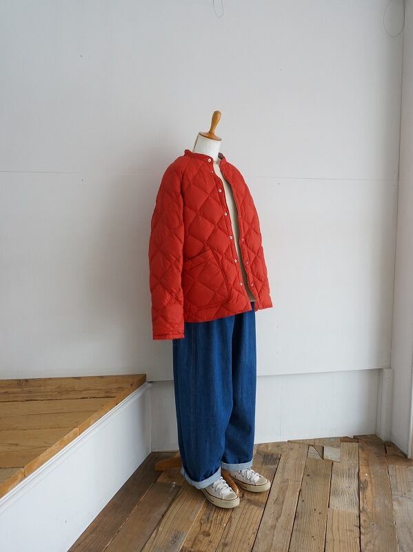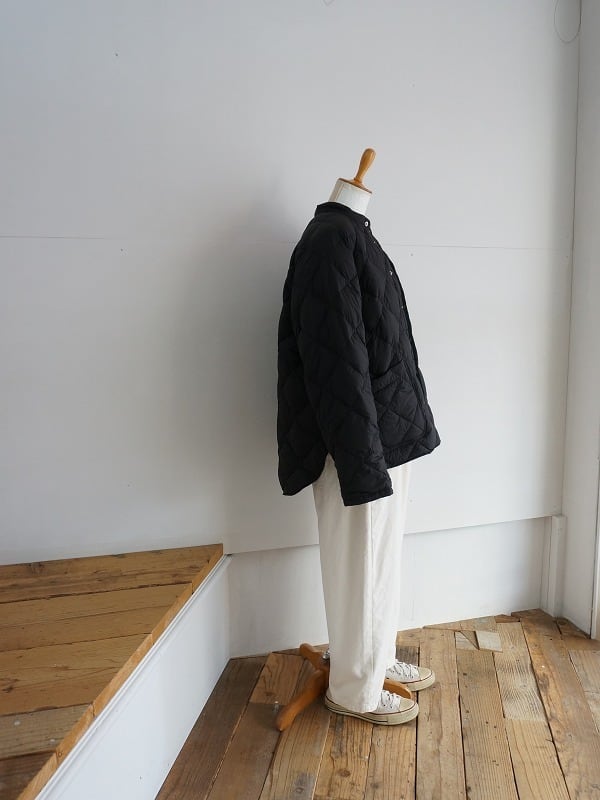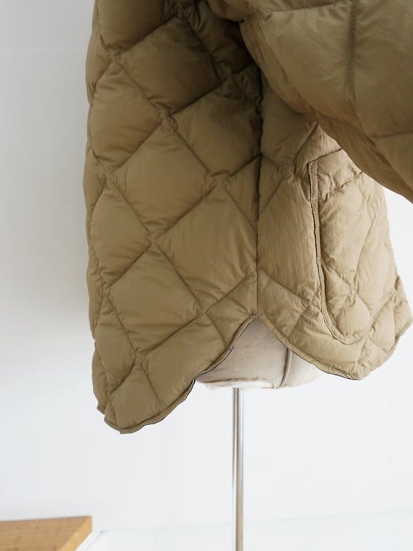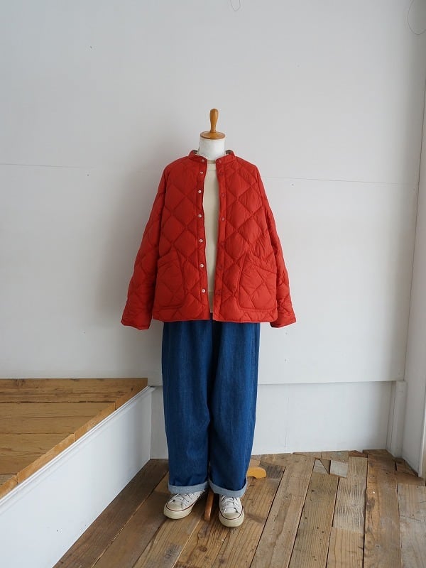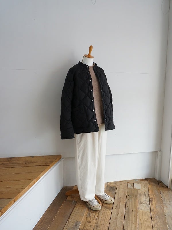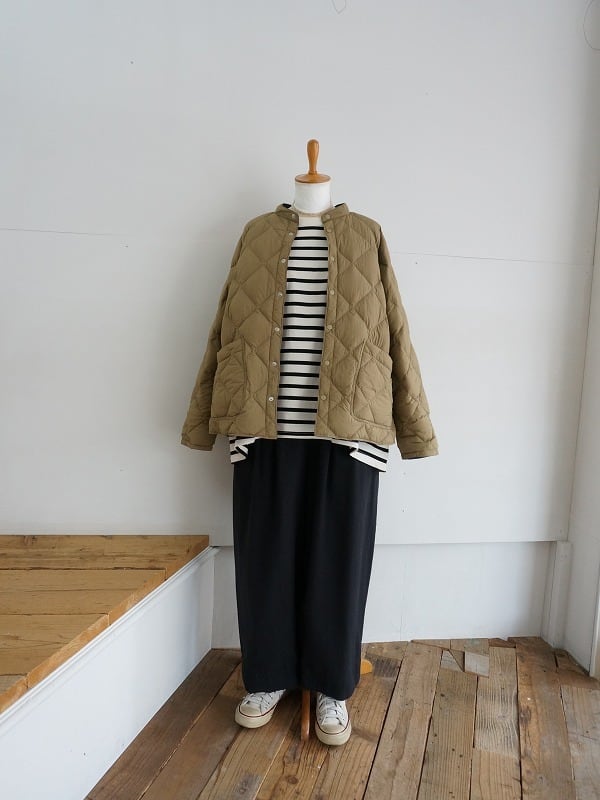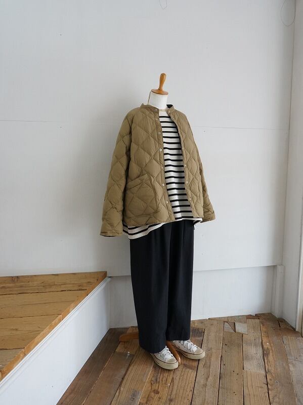 するっとすべりが良く、軽い羽織り心地。中綿がダウンなので空気を含んであたたかです。