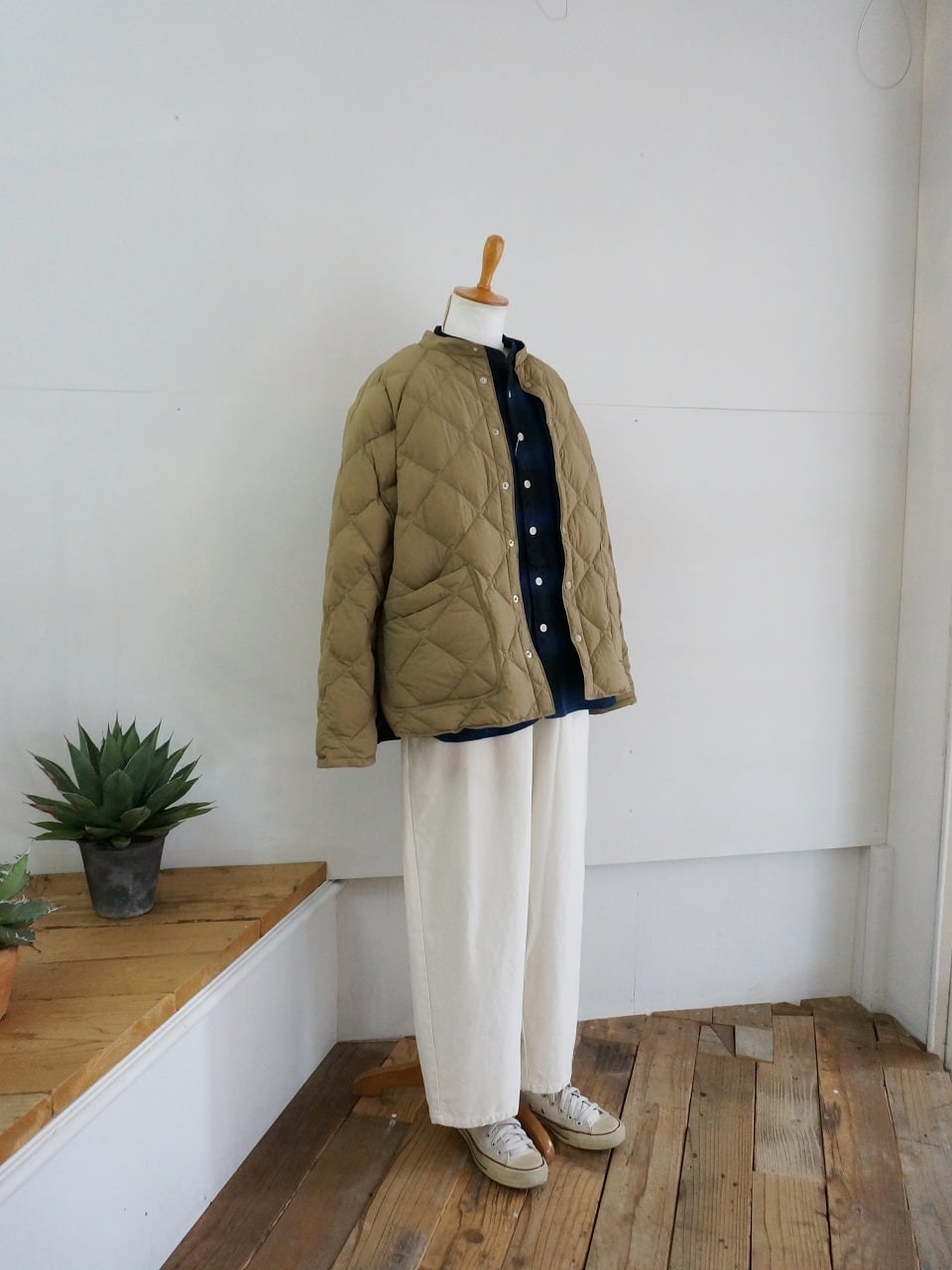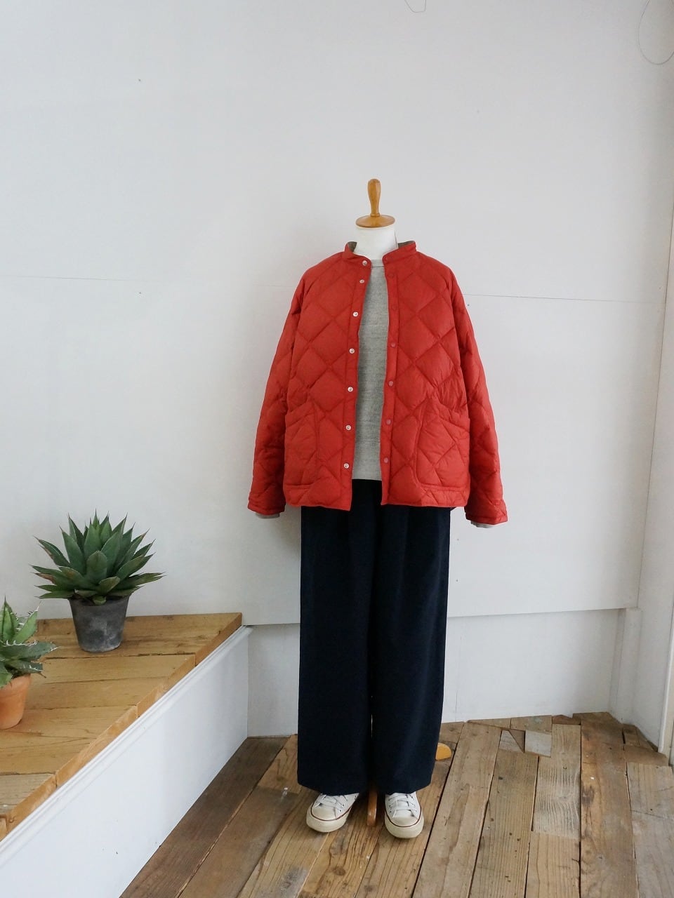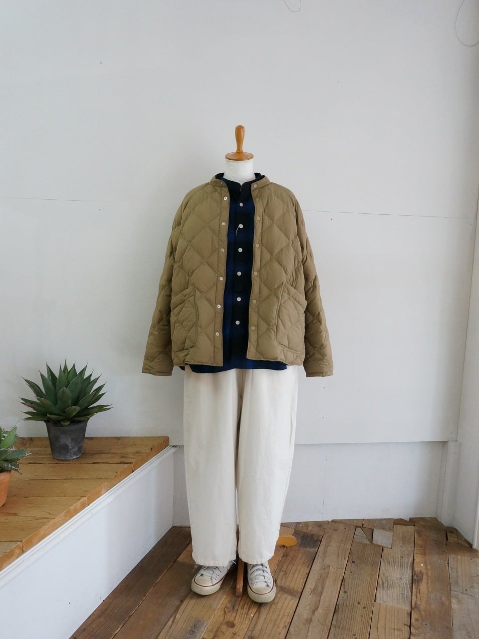 するっとすべりが良く、軽い羽織り心地。中綿がダウンなので空気を含んであたたかです。