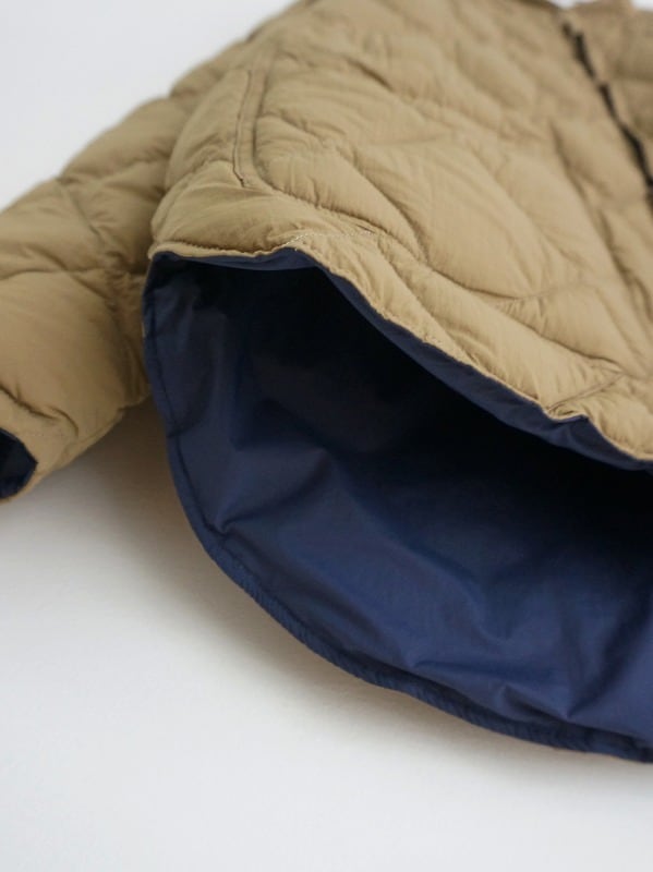 20デニールの軽くさらっとしたナイロン地を使い、中綿にダウンを詰めたジャケットです。