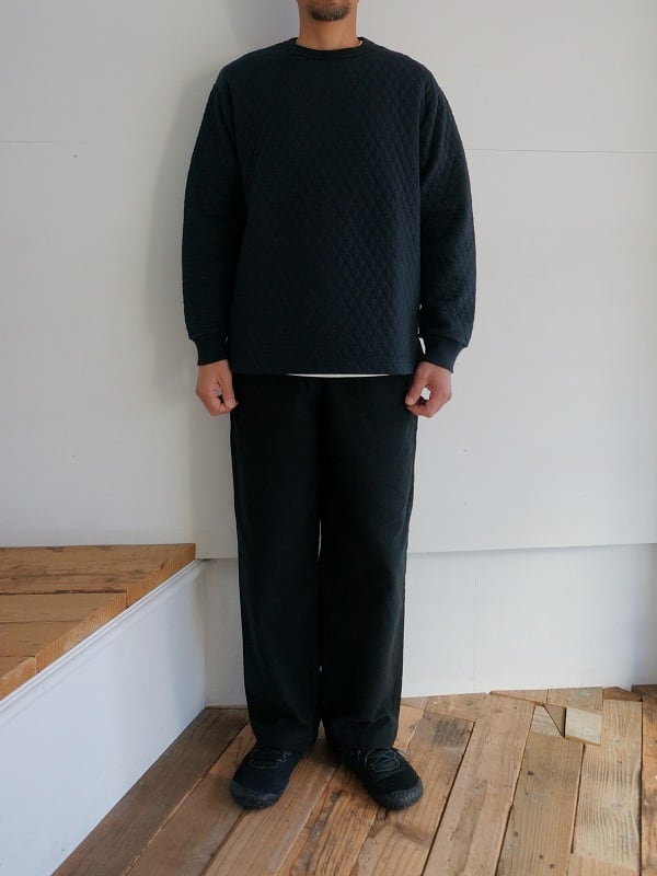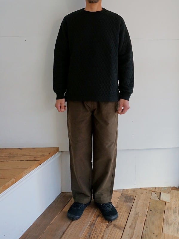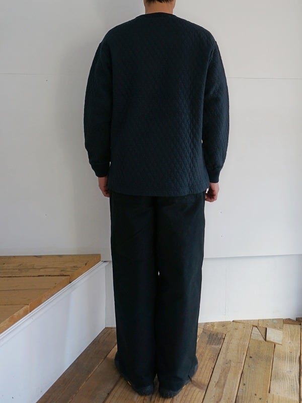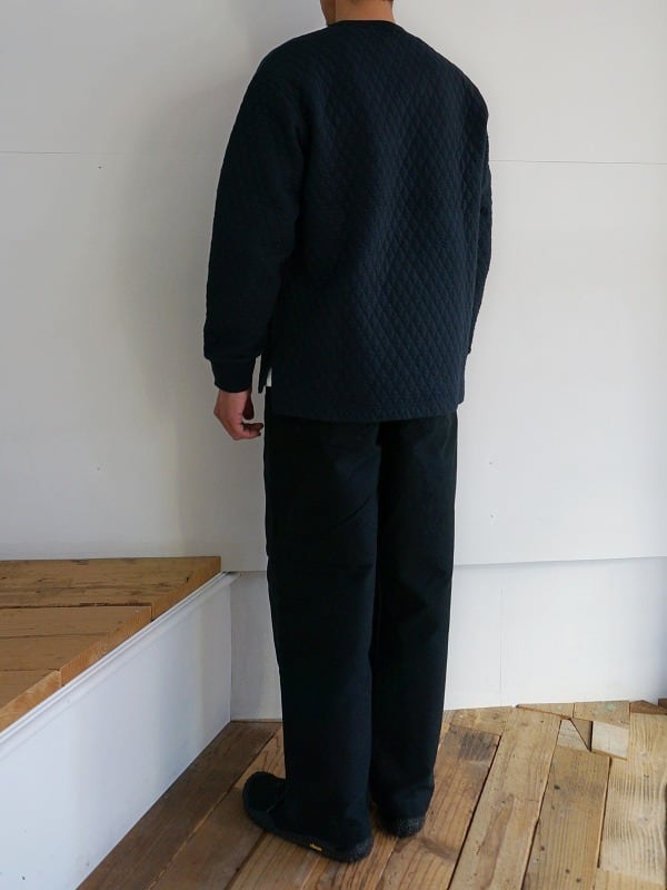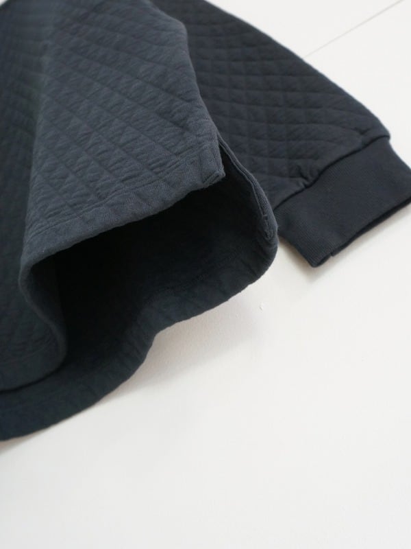 コットン100%の生地を二枚重ねて、そのあいだに薄手の中綿を挟み込んだキルティングの生地を使ったプルオーバーです。