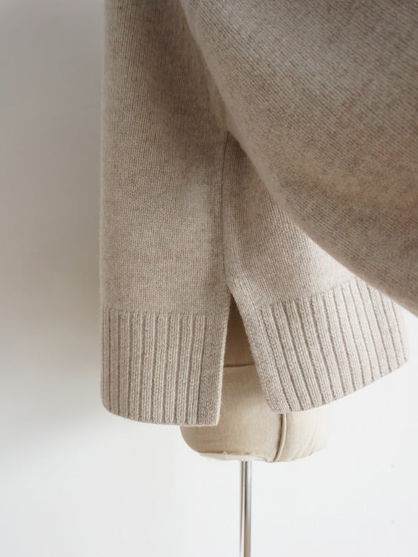 2つボタンが特徴で、サイドにはやや深めのスリット入り。袖幅、身幅にゆとりのあるサイズ感なのでブラウスの上にも羽織りやすくなっています。なめらかなニットの風合いもよく、冬ならではの重ね着が楽しめます。