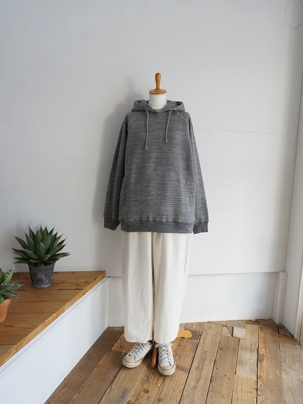中肉厚のふっくらやわらかな裏起毛のスウェットプルパーカーです。
