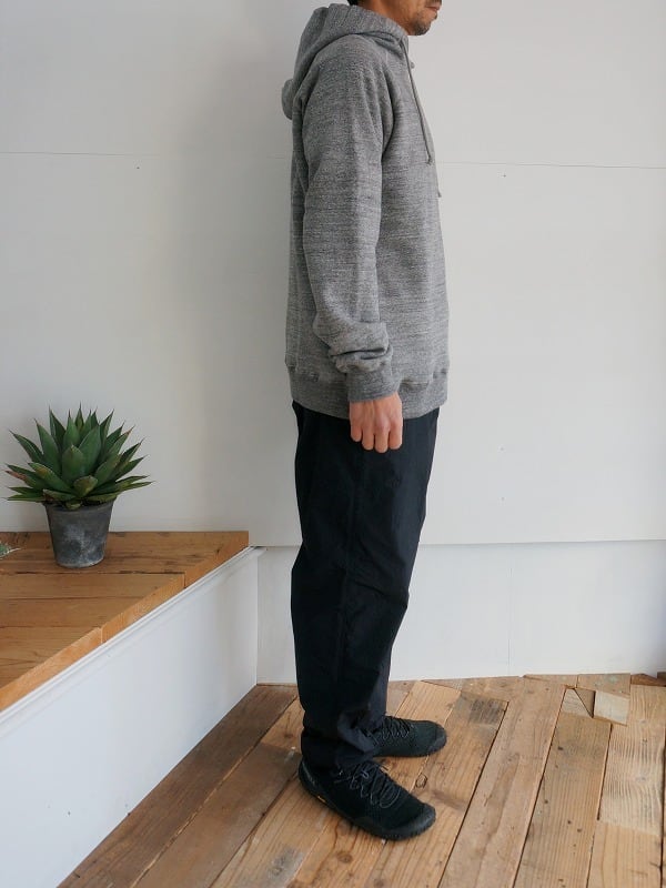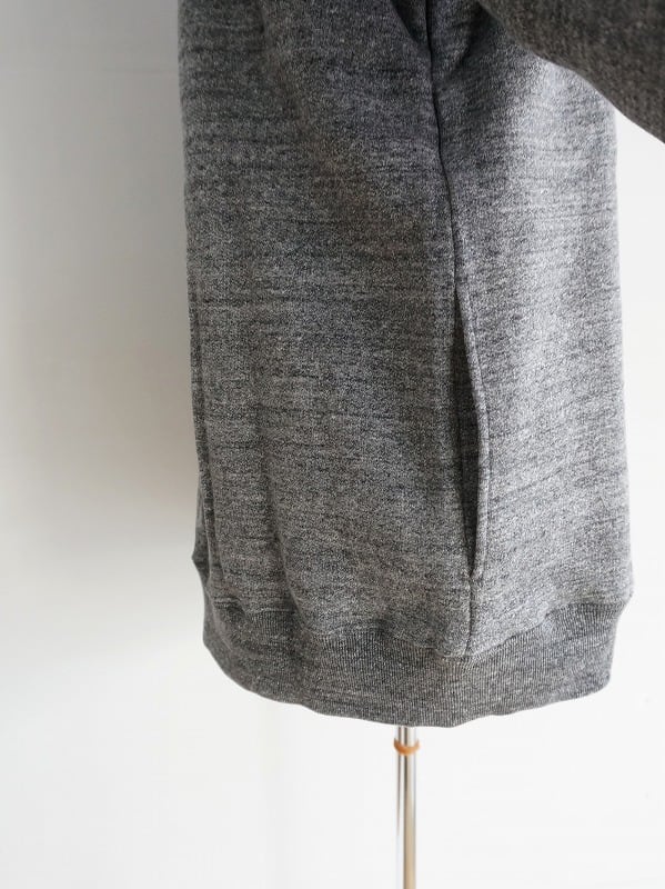 中肉厚のスウェット地。裏起毛で肌触りよく、空気を含んであたたかです。