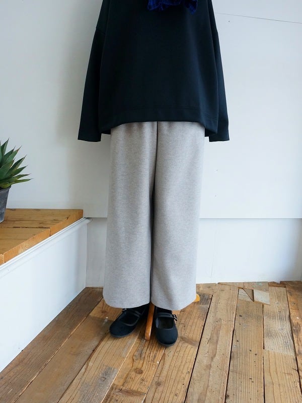 ほどよい弾力とふくらみが特徴のジャージー素材を使用したパンツです。ウールのような風合いでやわらかく、フリースのような保温性があります。