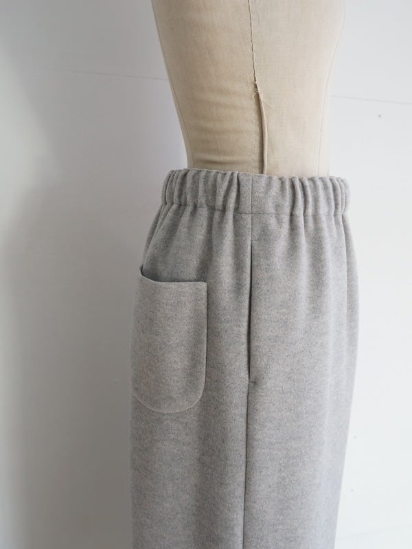 ほどよい弾力とふくらみが特徴のジャージー素材。表面は起毛して、メルトンウールのような質感に仕上げられた生地です。