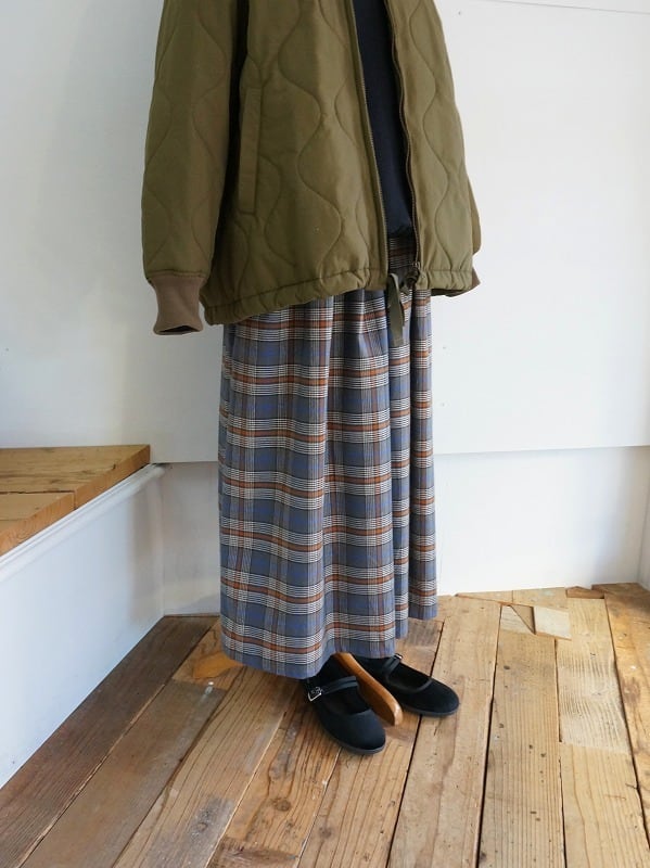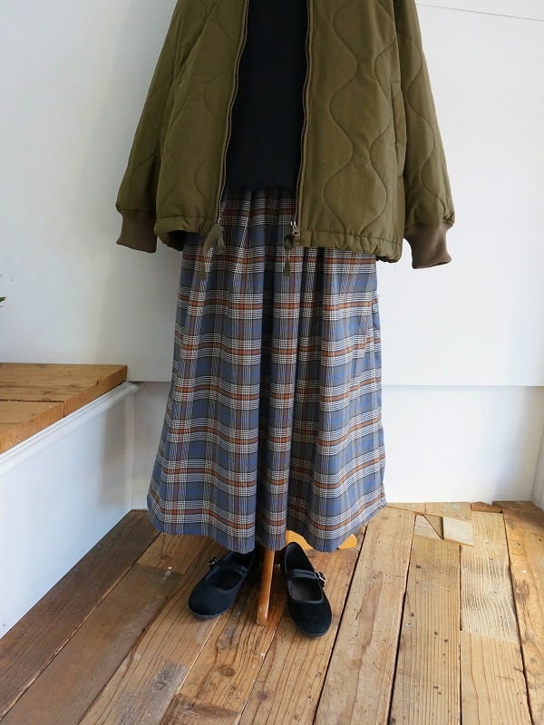 うっすら起毛した程よい厚みのチェックの生地を使ったスカートです。形はオーソドックスなフレアのシルエット。ゴムのウエストにタックが入り、裾へかけてゆるやかに広がっています。あたたかみのあるチェックが季節感をぐっと高めてくれます。コーディネートのポイントにおすすめです。