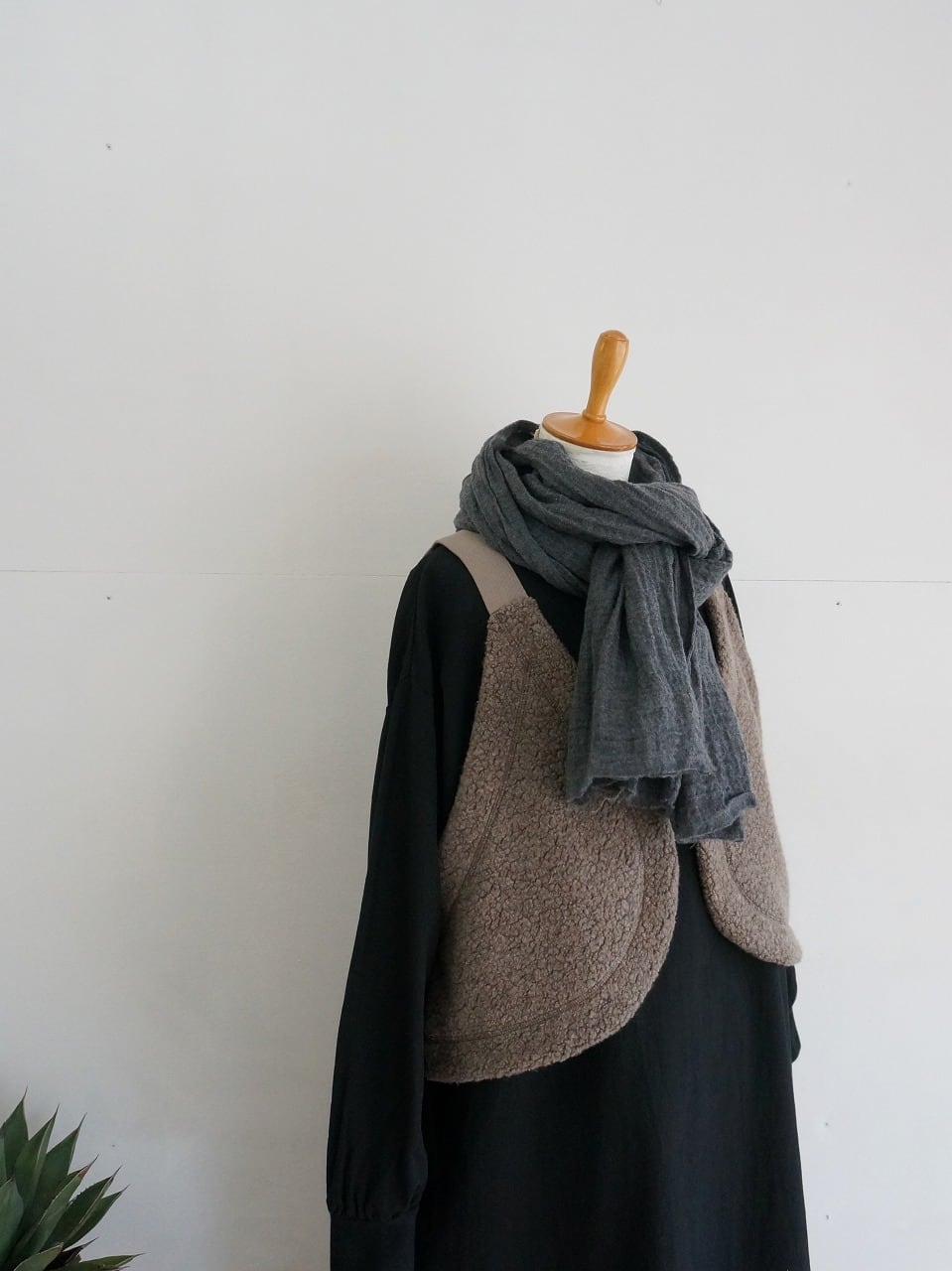 洗い加工を施すことでやわらかな肌触りに。軽い着け心地で首元をほっこり温めてくれます。ふんわりと巻いて、コーディネートのアクセントにもどうぞ。