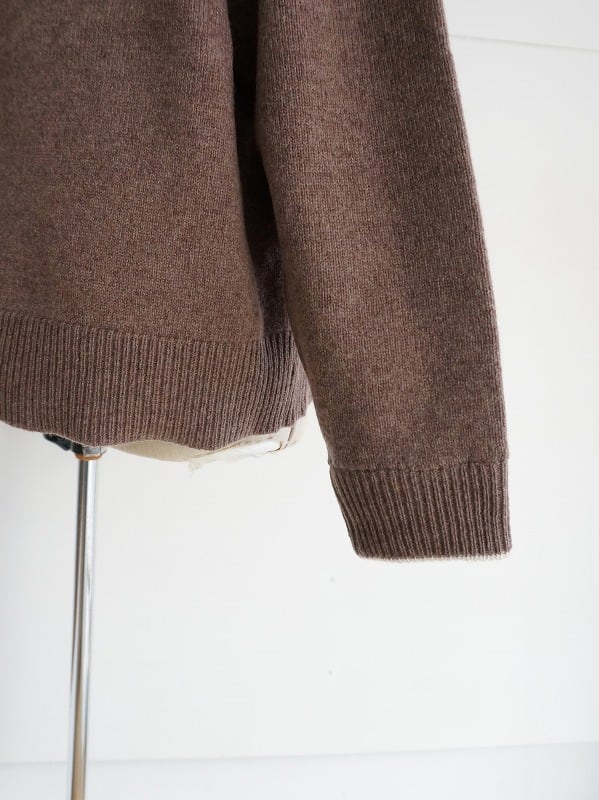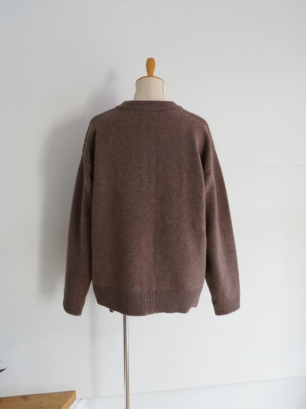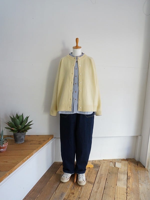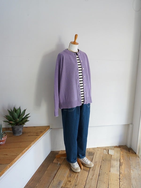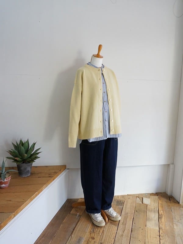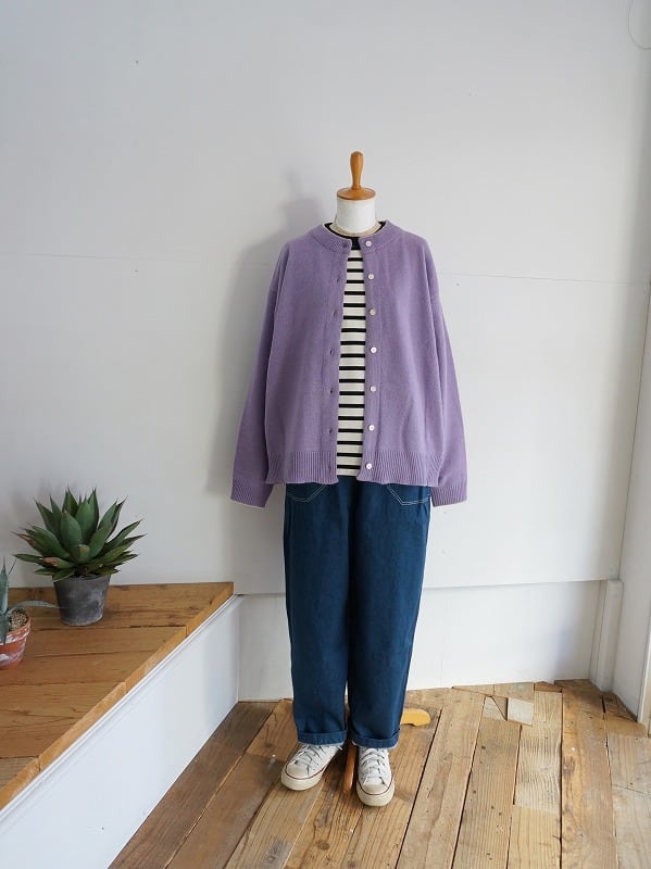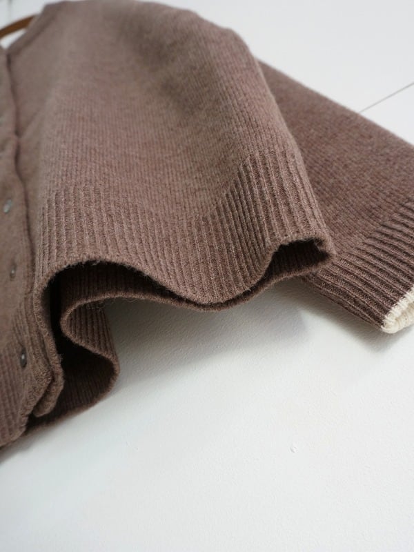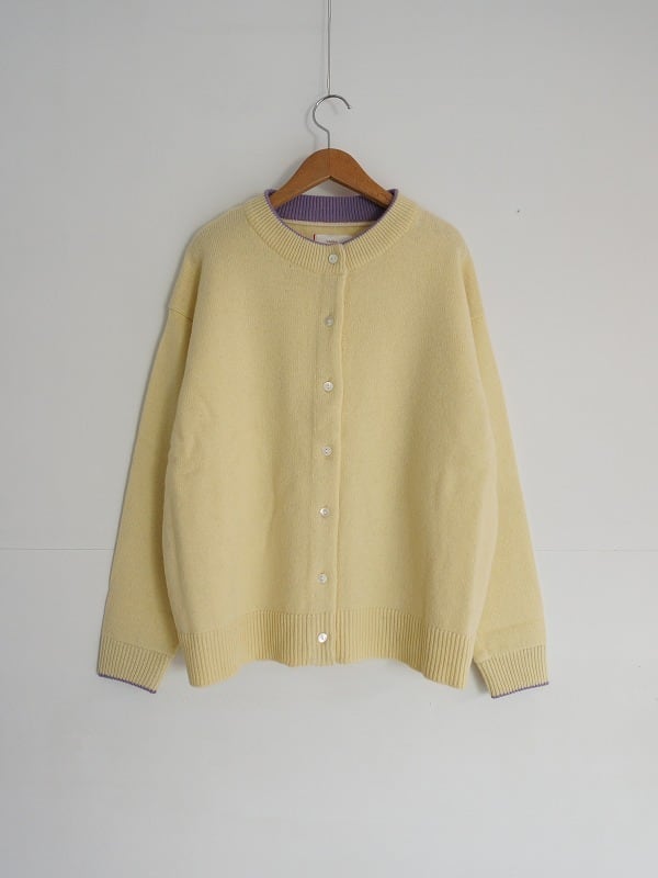 襟元と袖口のさりげない配色がポイントに。ややゆったりしたシルエットでシャツにも重ね着しやすいつくりになっています。軽やかさとあたたかさを兼ね備えたデイリーに活躍する一枚です。