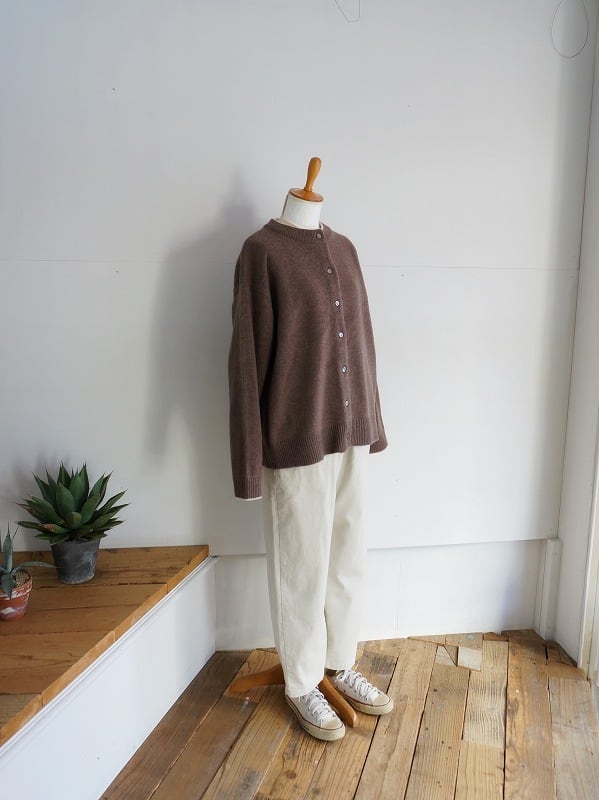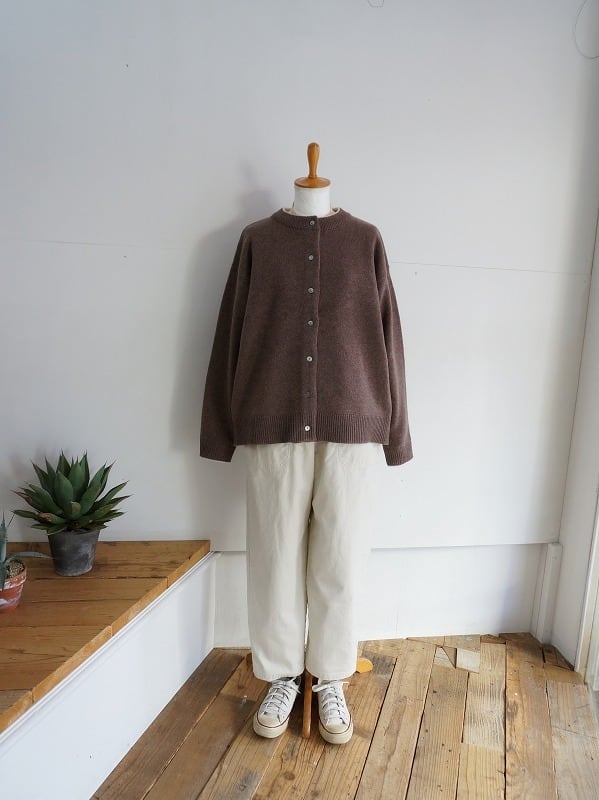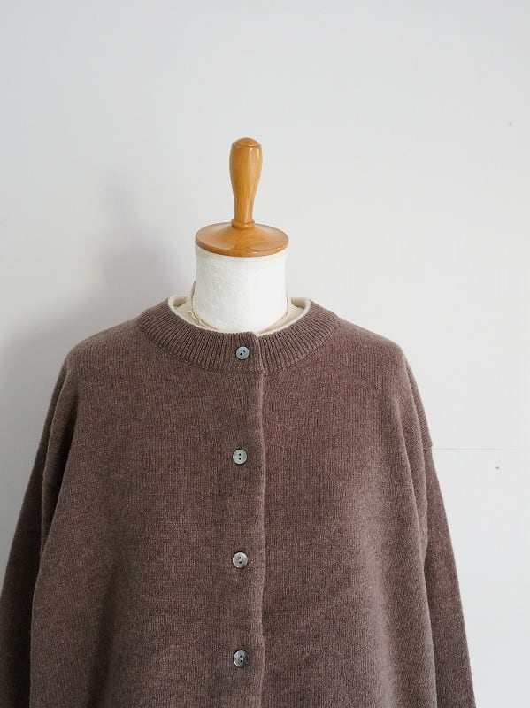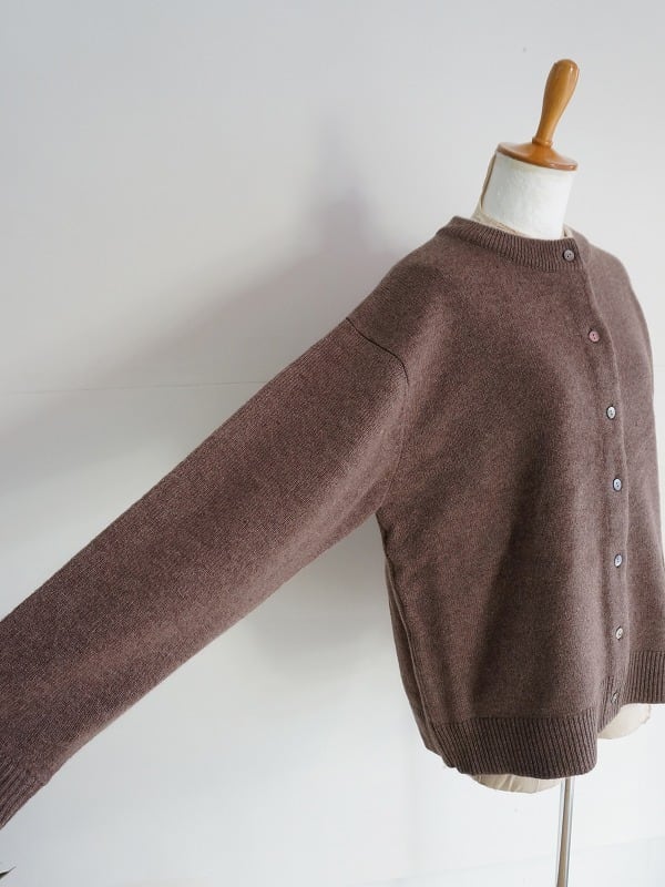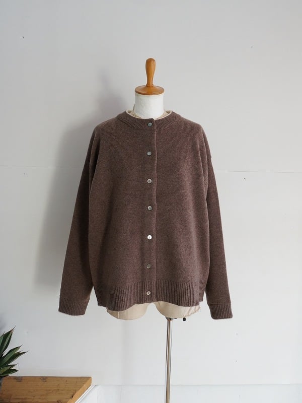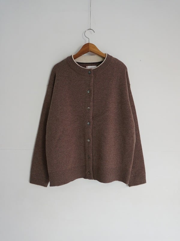 細くやわらかな繊維が特徴のラムウールを使用したクルーネックのニットカーディガン。軽やかな着心地ながら、しっかりとした保温性が特徴です。