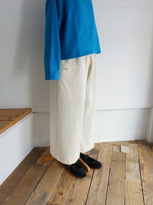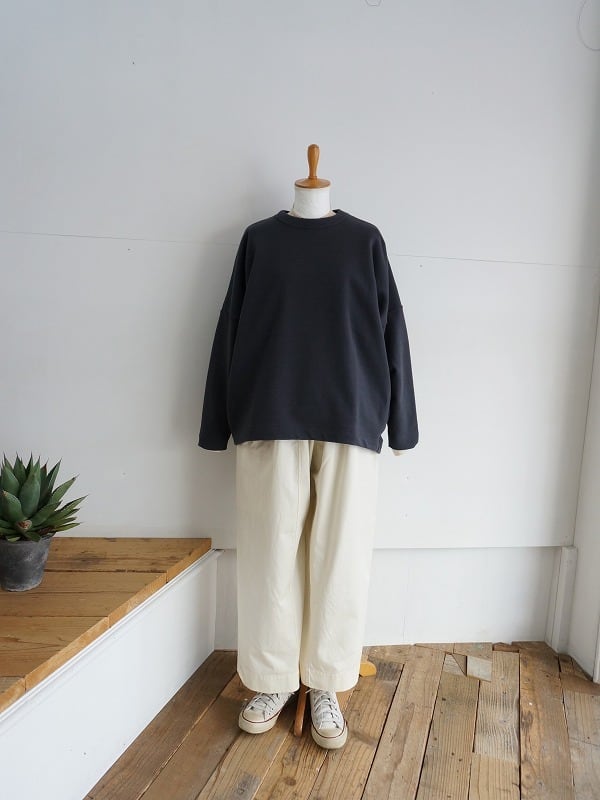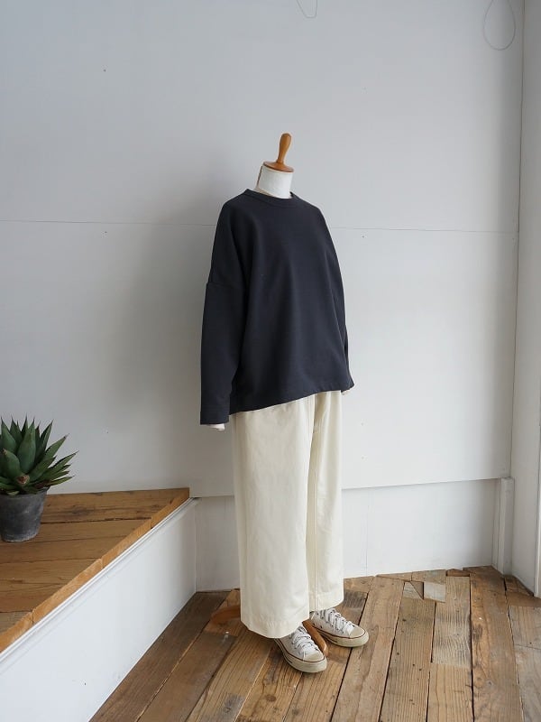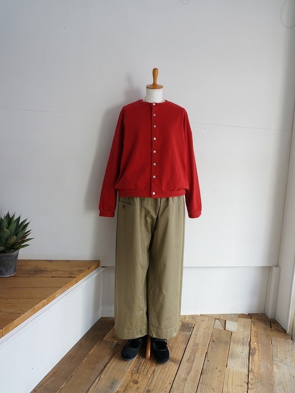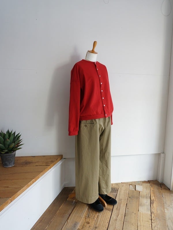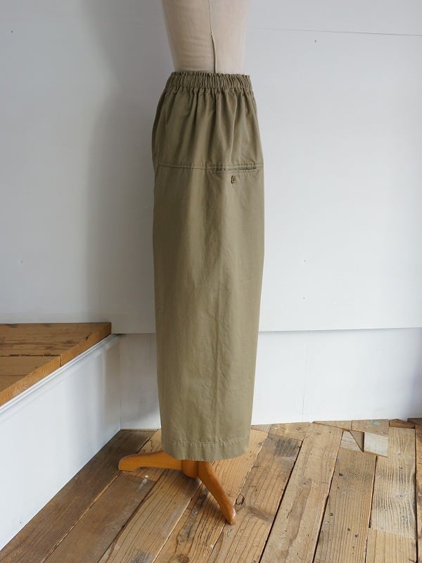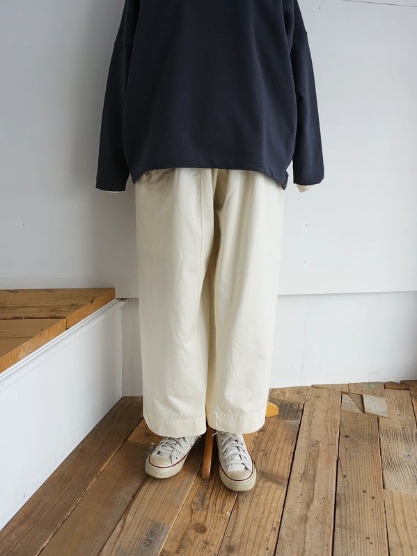 ボリュームがありつつも収まりが良く、いろいろなトップスにバランスよく組み合わせられます。通年で使えるチノの生地感も良く、定番アイテムとして長く活用していただけます。