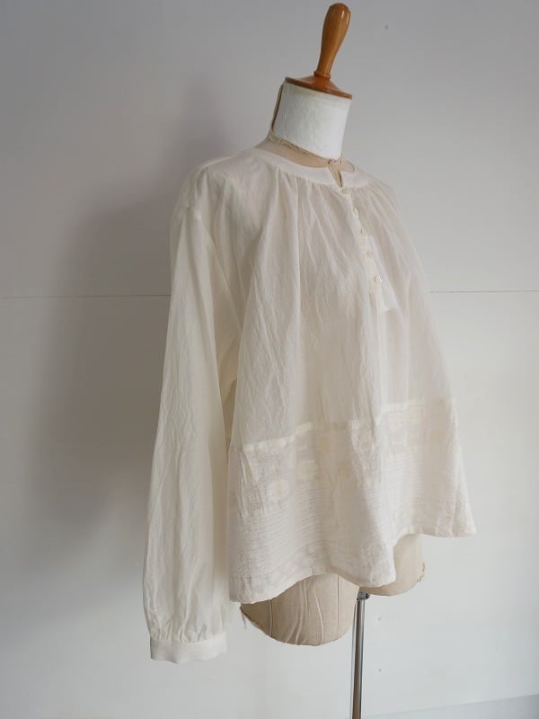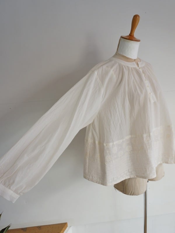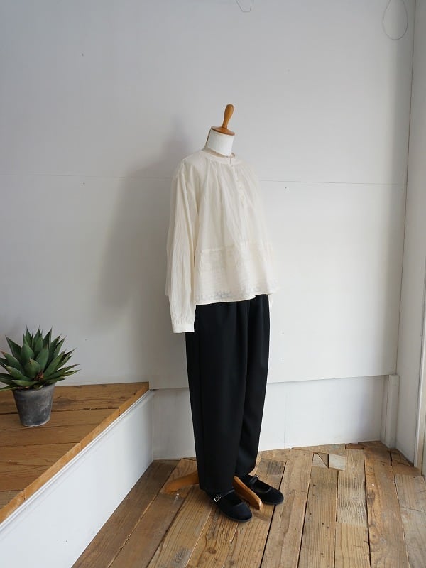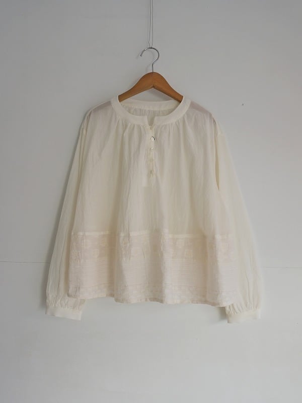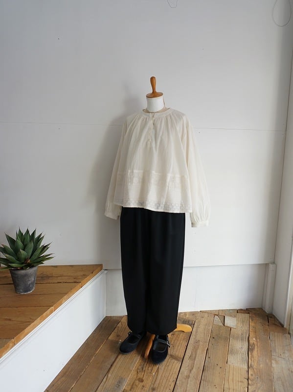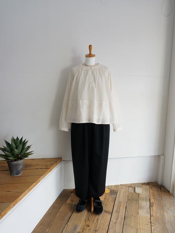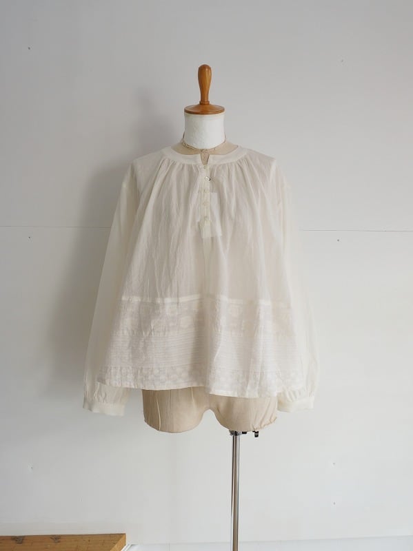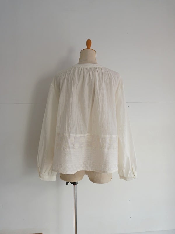 裾にぐるりとフラワージャガードの生地をあしらったブラウスです。