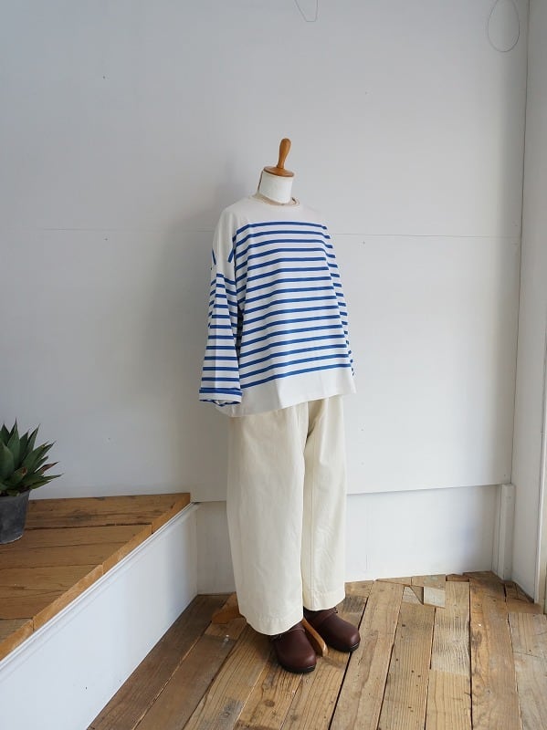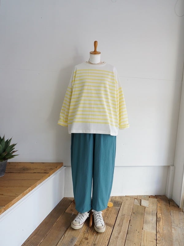 ナチュラルランドリーオリジナルのパネルボーダーです。程よく目の詰まった生地は型崩れしにくく身体の線を拾わない素材になっています。