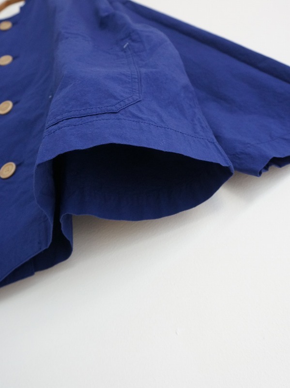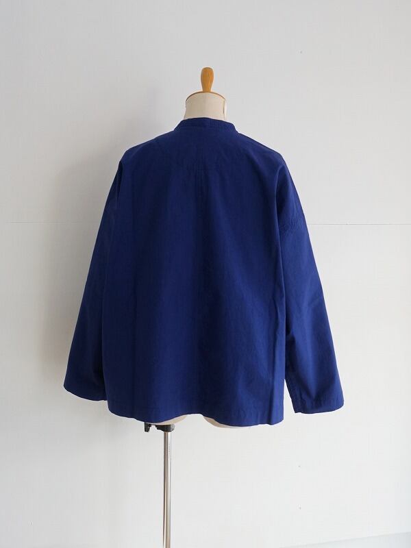 ワークジャケットがベースになった、ドロップショルダーのボックスシルエットでゆとりをもって羽織れる形。低めの襟にはステッチワークが施され、 両サイドには大きめのポケットが配置されています。