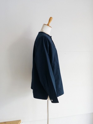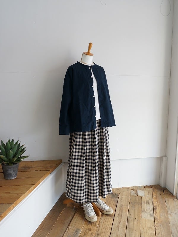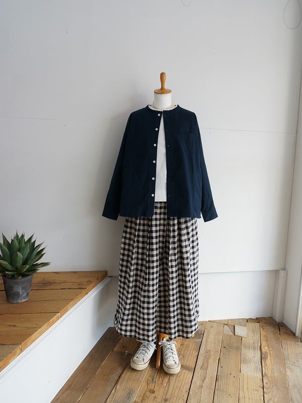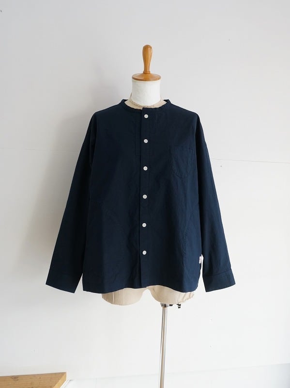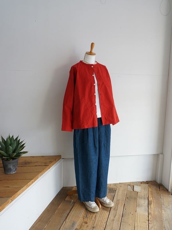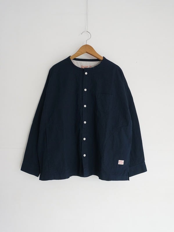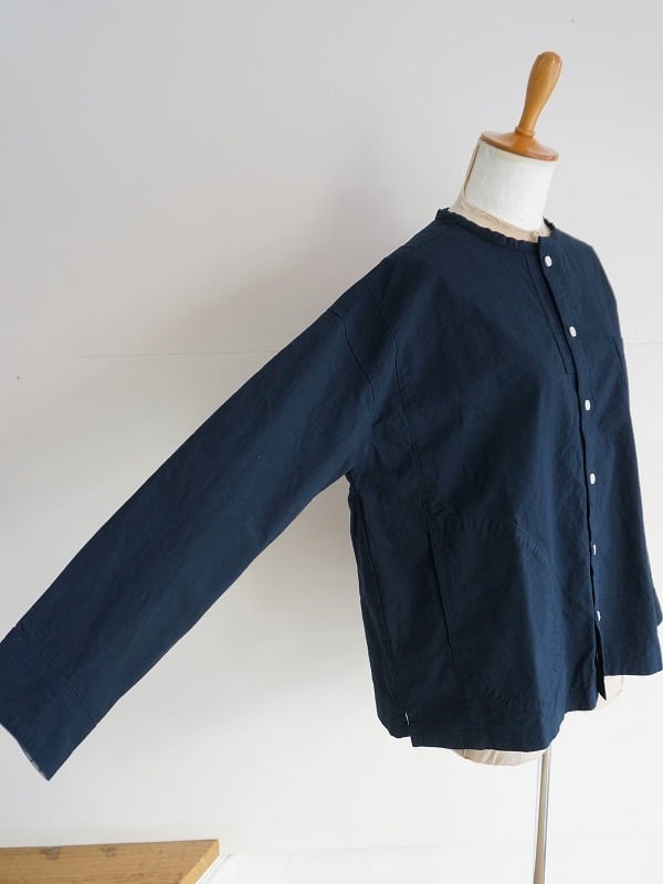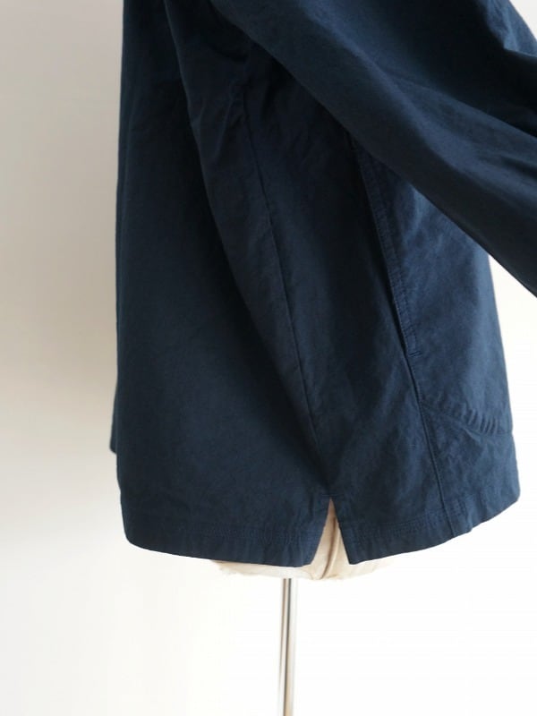 丸首の前開きタイプ。ドロップショルダーのボックスシルエットで身頃はゆったりしたつくりになっています。両サイドにポケットが付き、ちょっとした切り替えやステッチワークなどの作り込みも快晴堂ならでは。一枚ではもちろん、カーディガン風に羽織ってみるのもおすすめ。長く着られる素材感なので、季節ごとの着こなしが楽しめます。