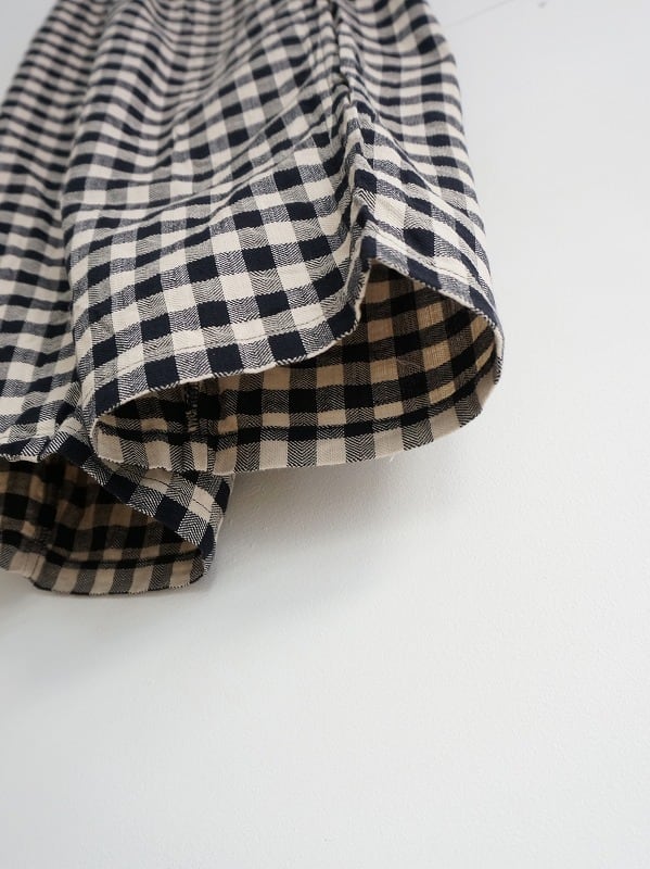 太めの糸でざっくり織りあげたヘリンボンチェックの生地を使用しています。綿をベースに麻が少し混ざることで表面感が生まれ独特の風合いになっています。