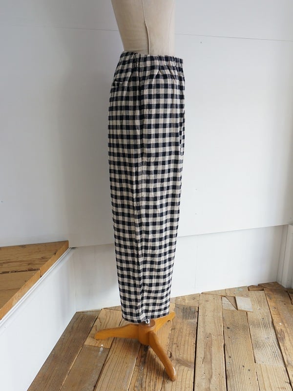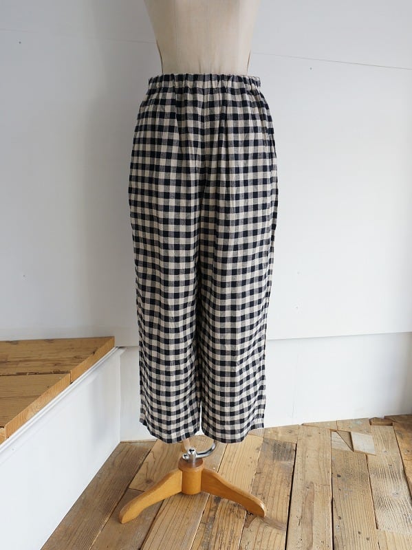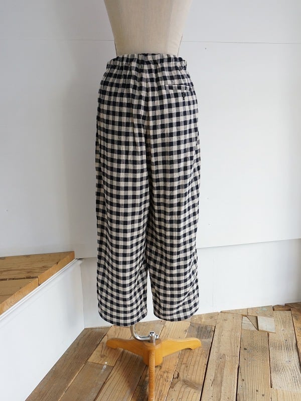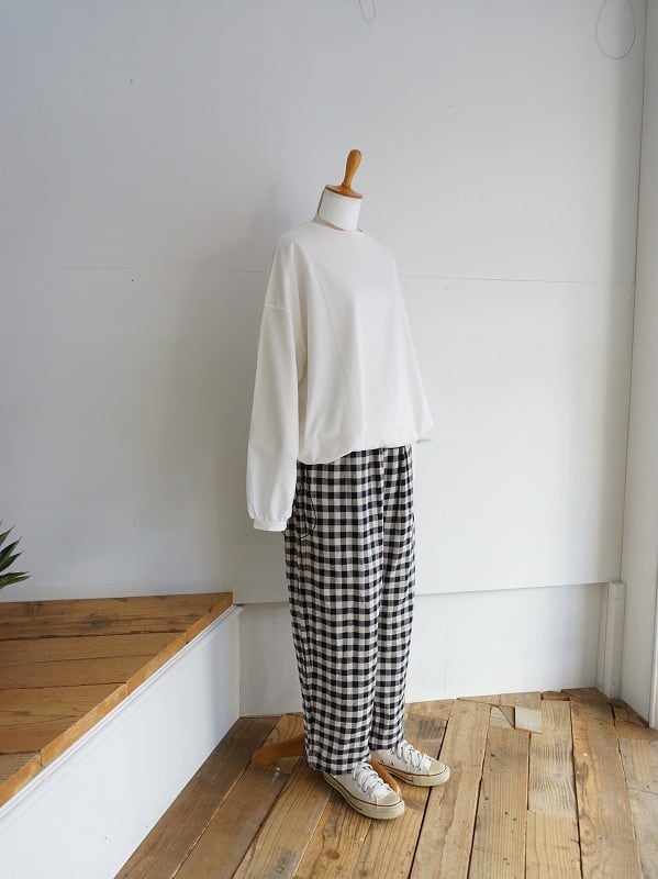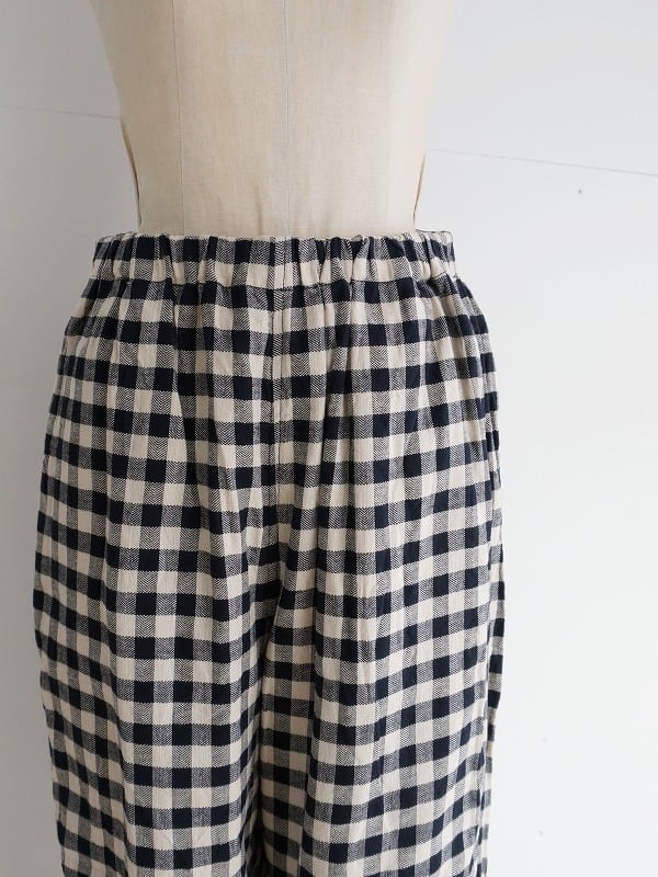 腰周りやワタリにゆとりのあるワイドテーパードシルエットのパンツです。程よいボリューム感で収まりよく、穿き心地もラクチン。さらっとした肌触りが心地よく、チェックがコーディネートのアクセントになってくれます。