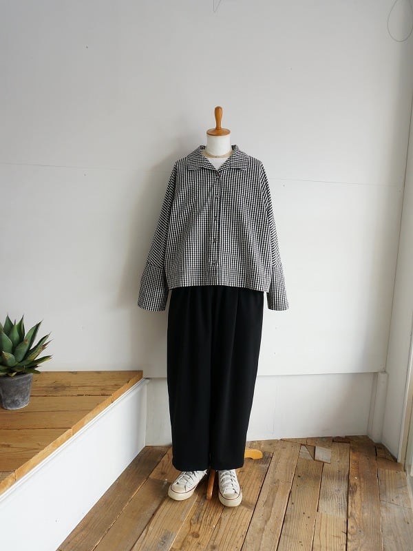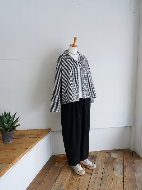 少し短めの丈感はワイドパンツやスカート、ワンピースにも好相性。季節の変わり目にさっと羽織れる軽アウターになっています。