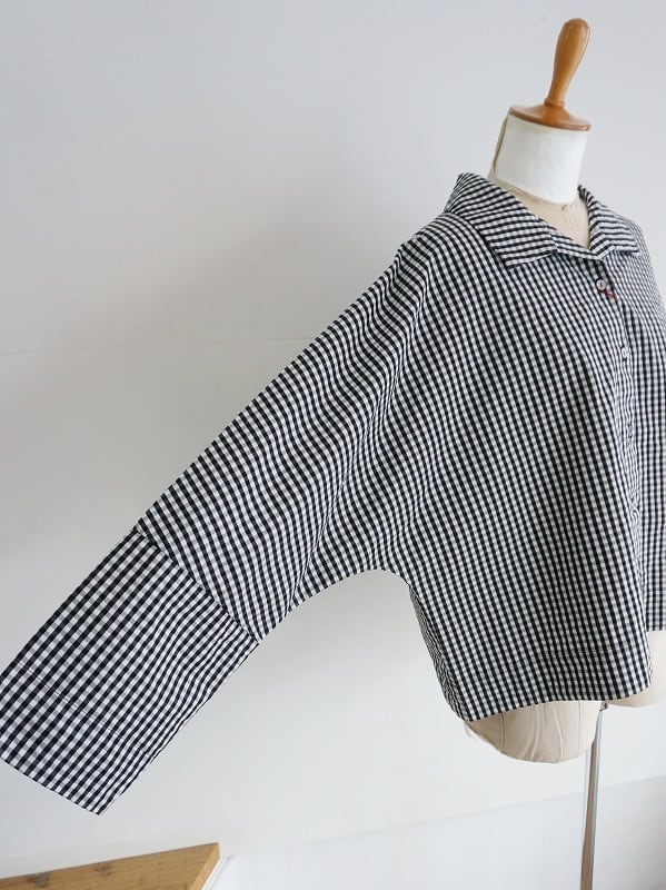 程よく張り感のある綿素材を使用した、シャツ感覚で羽織れるドルマンジャケットです。オープンカラーに立体的なフォルムがポイントで、抜け感を持たせてリラックスした雰囲気に仕上げています。
