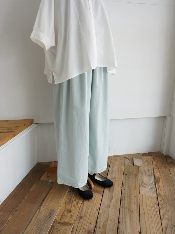 裾へはストンとしたワイドシルエット。たっぷり存在感のあるボトムになっています。