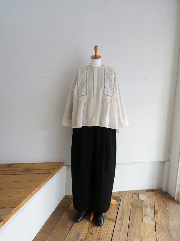 ・LAITERIE キャンブリック ヨーク刺しゅうブラウス