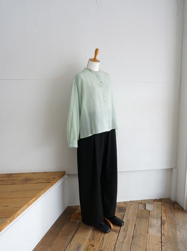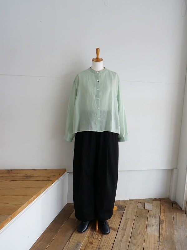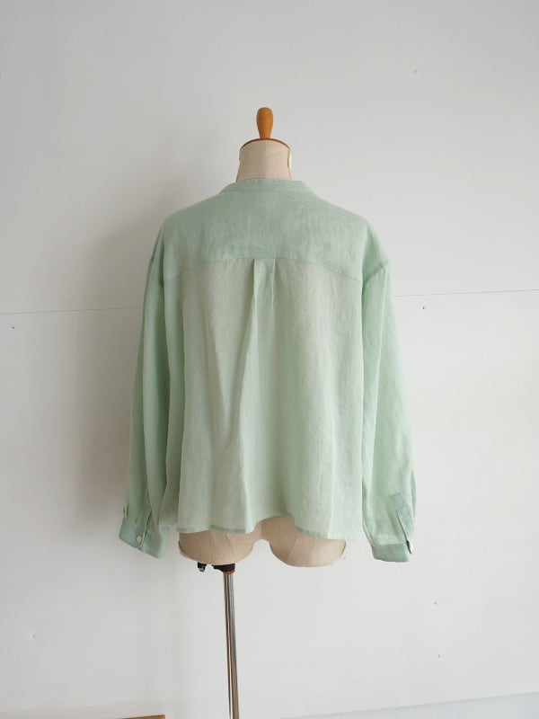 前開きなので羽織として使うのもおすすめ。ラミーリネンのシアーな雰囲気は涼しげなコーディネートを演出してくれます。