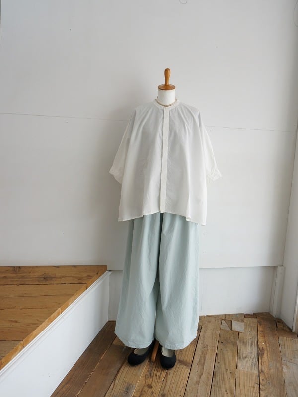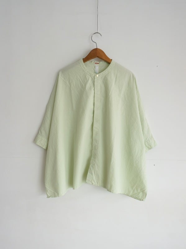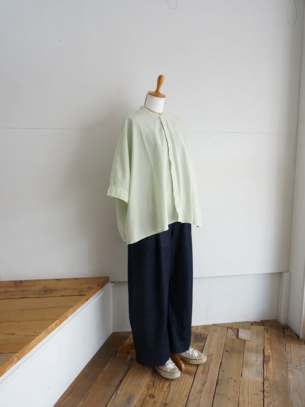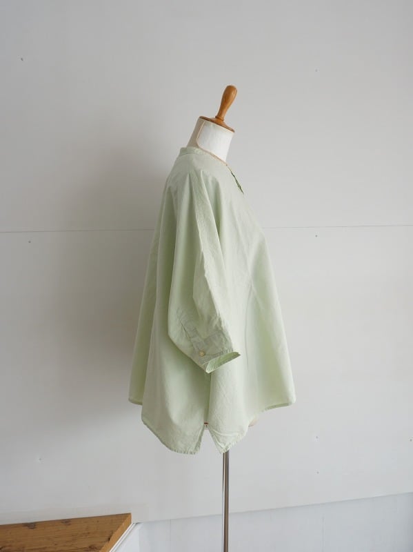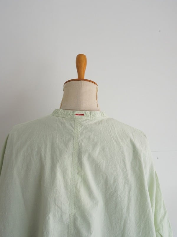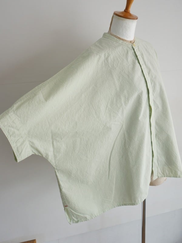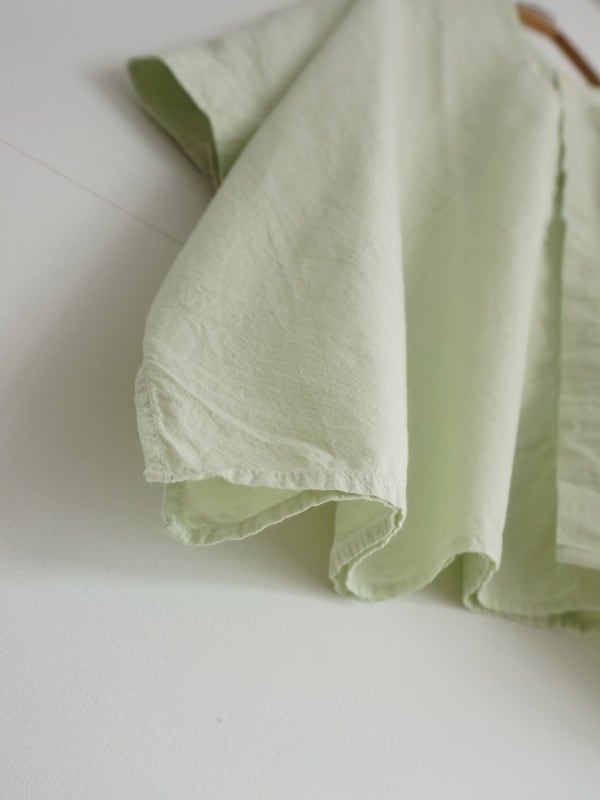 身頃と袖がひとつながりになった、たっぷり身幅のあるデザイン。立体感のあるシルエットがポイントです。丸首の前開きタイプで、前立ては比翼仕立てですっきりした印象に。きれいな色合いもアクセントになって、軽やかな雰囲気のコーディネートが楽しめます。
