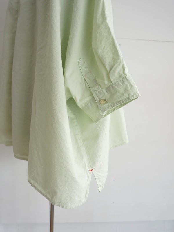 独特の凹凸感とシャリ感があるコードシャンブレーを使い、製品染めで仕上げたシャツです。