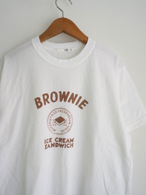 プリントは架空のお菓子屋をイメージした昔のパッケージのようなイラスト。後ろ襟にはハンガーループが付き、さりげないポイントになっています。