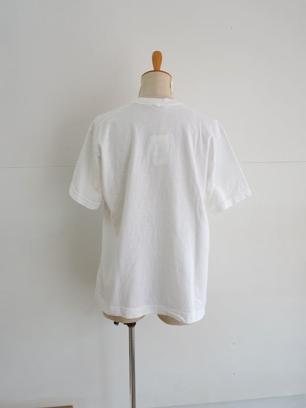 インドの手紡ぎコットンを使用したムラ糸天竺のプリントTシャツです。程よいしっかり具合でドライな質感。ユーズドっぽい雰囲気でカジュアルに着ていただけます。