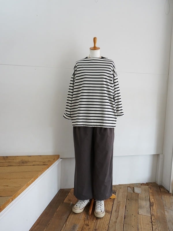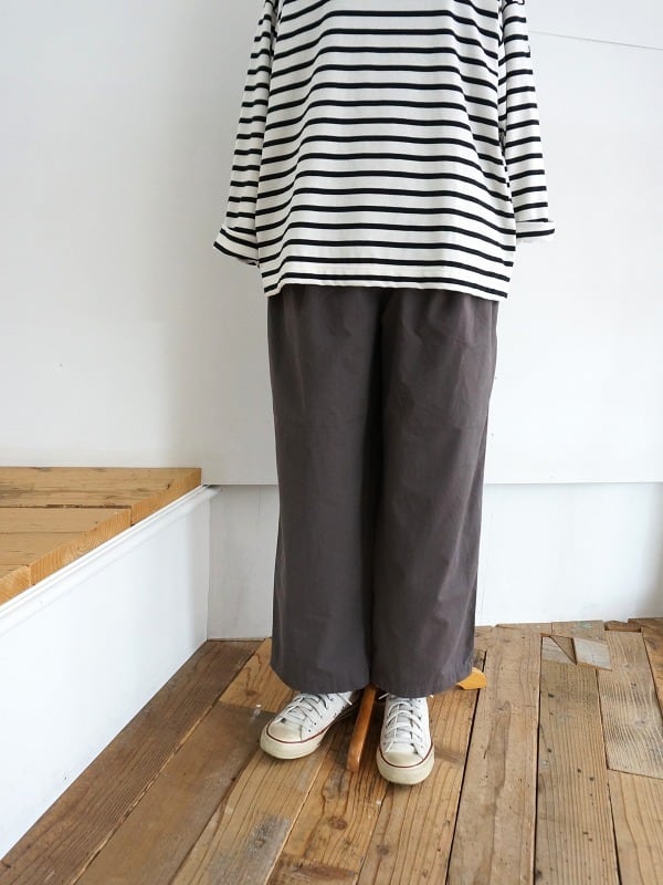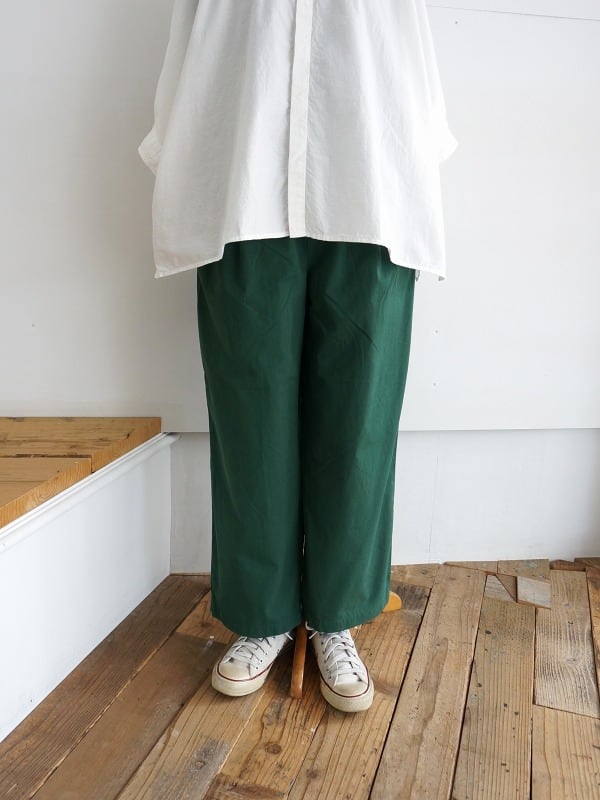 程よく張り感のあるしなやかな生地を使ったパンツです。太からず、細からずのストンとしたシルエット。ゆるやかにテーパードした形は収まりがよく、すっきり穿いていただけます。トップスとのバランスもとりやすく、デイリーに活用していただけます。