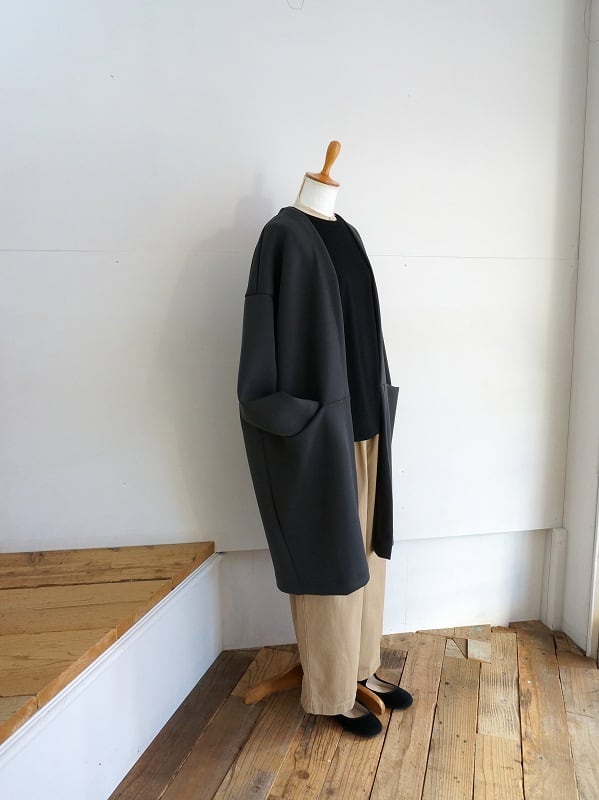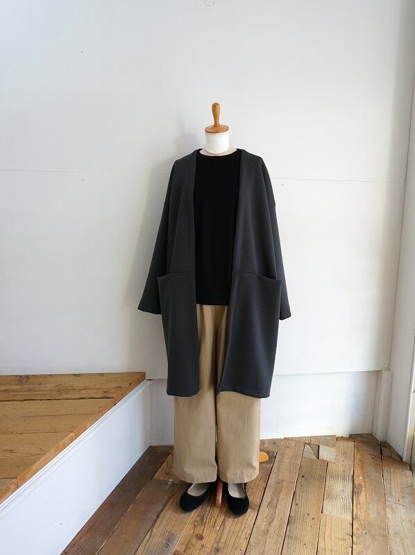 裾へはストンとしたすっきり見えするシルエット。きれいめコーディネートにも使えるし、カジュアルなトレーナーやパーカーに羽織ってみても◎ ライトアウターとしてもカーディガンとしても活用できて、幅広く着回しに使える一枚です。