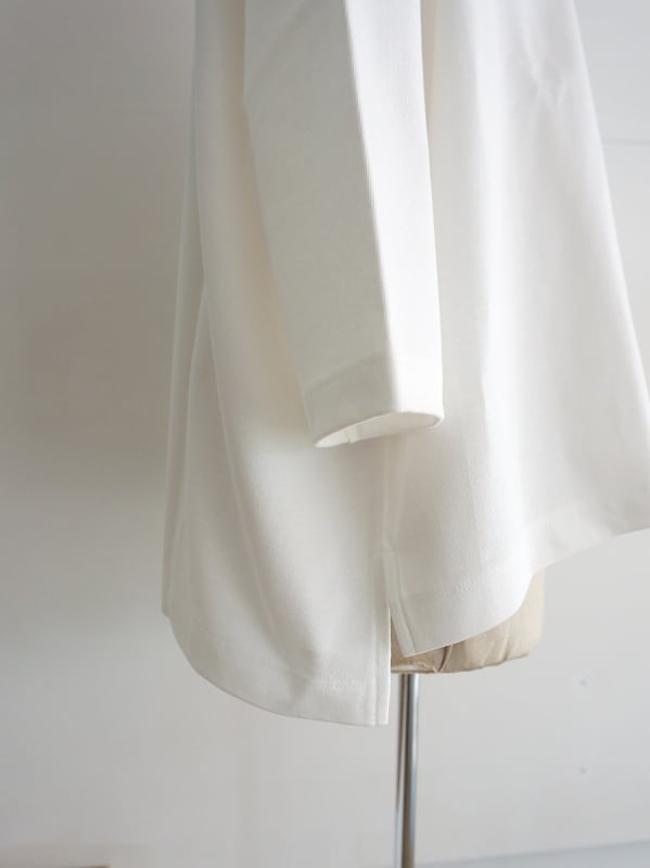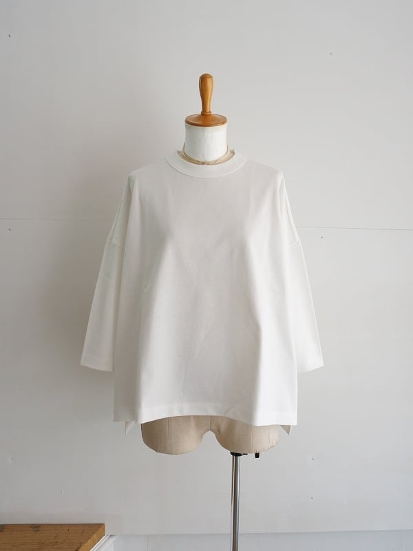 度詰めでしっかり編みたてられたカットソー。クルーネックのボックス型プルオーバーです。