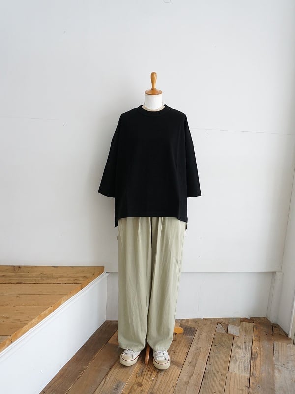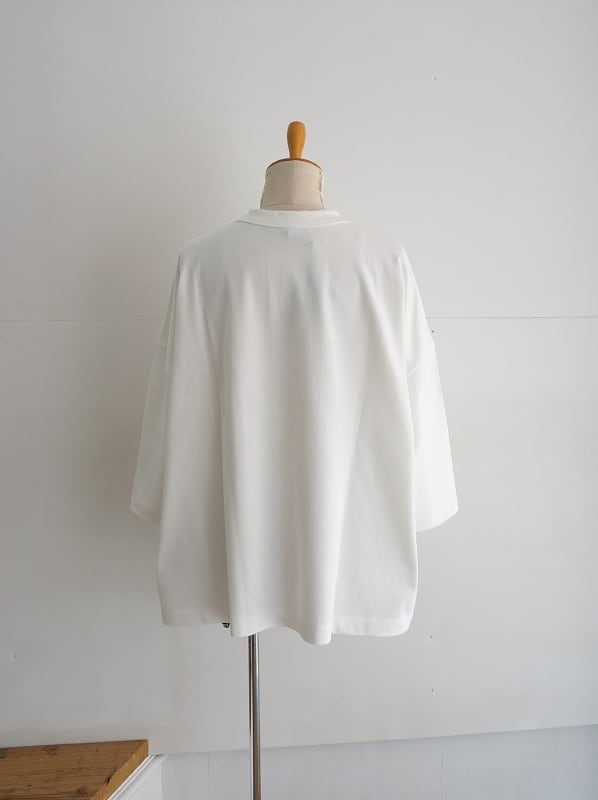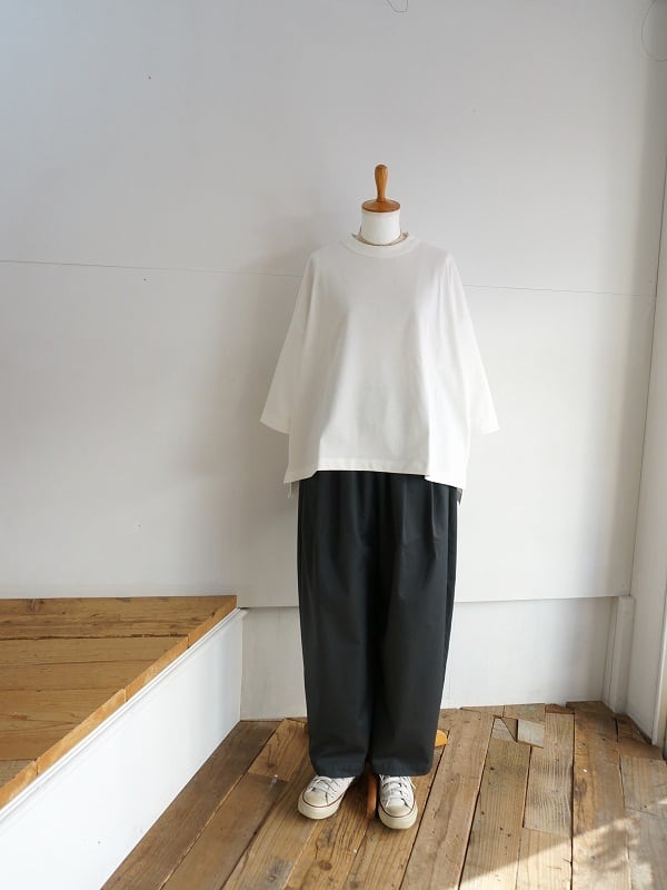 張り感のある生地はシルエットをきれいに保ってくれるので一枚着におすすめ。長く着回せる7分袖です。