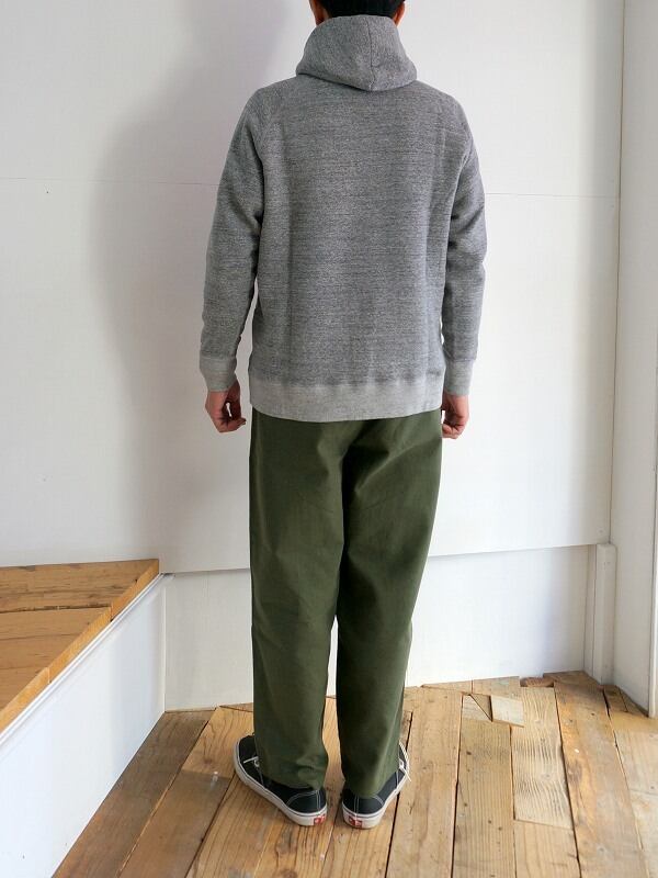 リサイクルコットンを使用したナチュラルな風合いのスウェット地を特殊な方法でふかふかの裏起毛にしています。ベーシックで着回しが利き、丈夫であたたか。冬の着回しにガンガン活用できる一枚です。