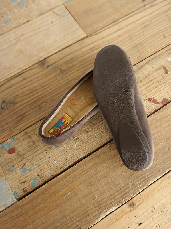 アッパーにベルベットの生地を使用したバレエシューズ。内側にはふっくらしたボアの生地があてられて、やわらかくてあたたかな履き心地の仕上がりです。
