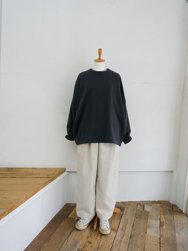 デニムやテーパードパンツにはもちろん、ワイドパンツやスカートにも。スウェットトレーナーとはまた違った雰囲気の着こなしが楽しめるアイテムです。
