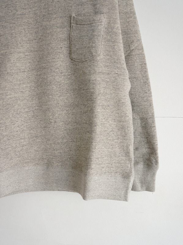 リサイクルコットンを使用したナチュラルな風合いのスウェット地を特殊な方法でふかふかの裏起毛にしています。ベーシックで着回しが利き、丈夫であたたか。冬の着回しにガンガン活用できる一枚です。